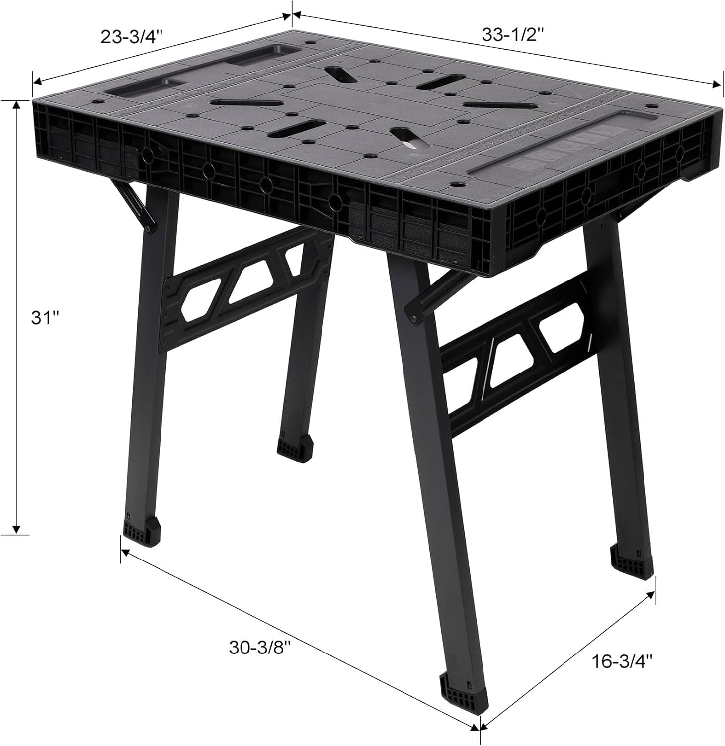 Foldable Work Bench, Portable Workstation, 1650LBS Capacity, Heavy Duty Work Table for Garage, Workshop, Home, Quick Setup & Storage, Multi-Functional Design, Black