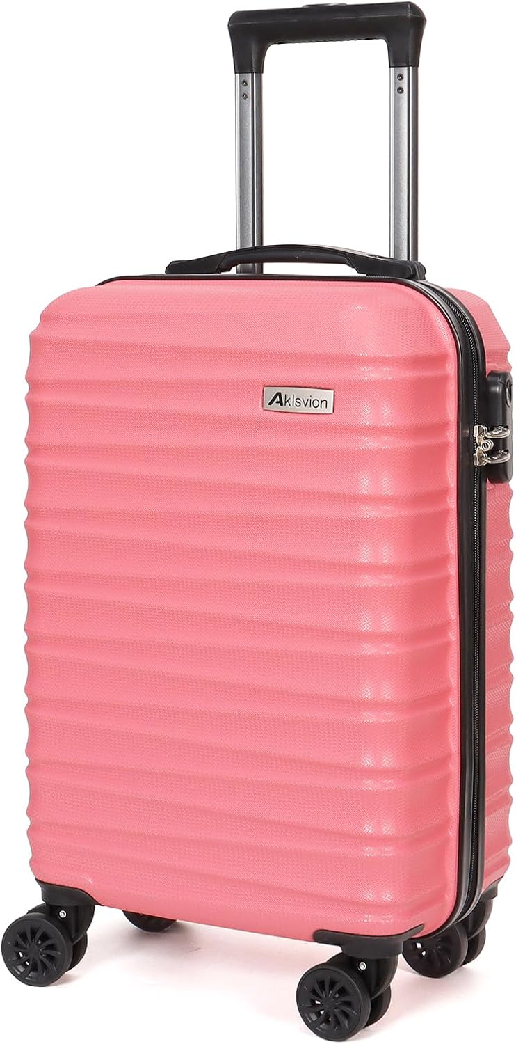 Carry on luggage 20 In suitcase with Spinner Wheels ABS & PC Hardside Luggage(Pink)