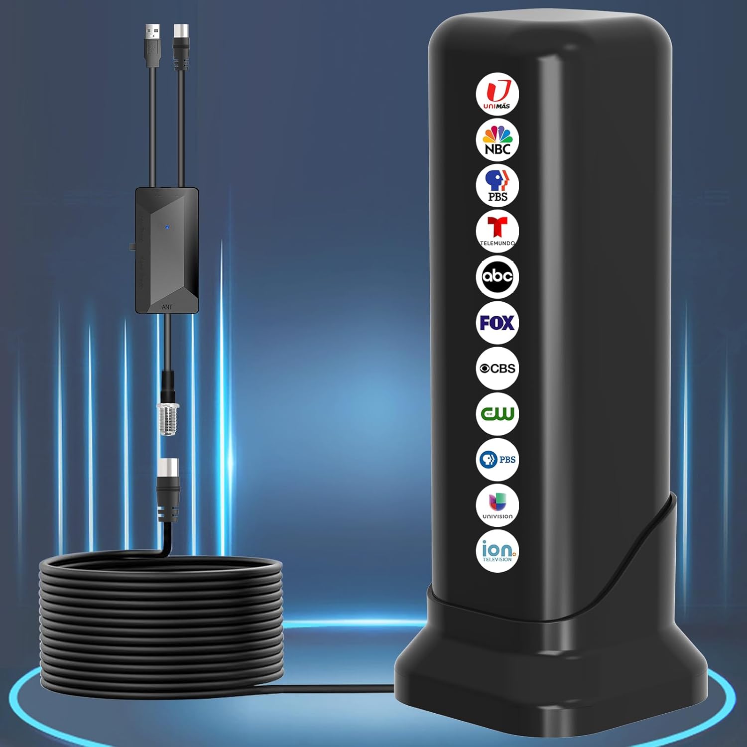 Digital TV Antenna for Smart TV Indoor, 2025 HD TV Antenna for Local Channels with Amplified Signal Booster, 360° Reception Indoor TV Antennas Supports 4K 1080P All Smart/Old TVs, Magnetic Base (TR-5)