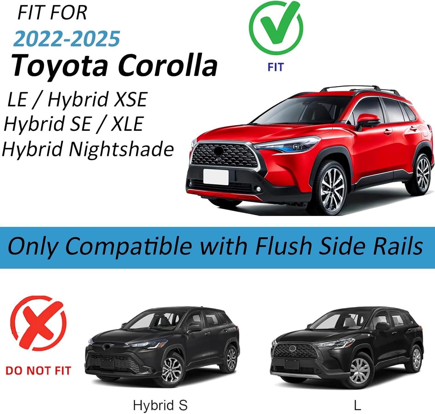【Fits For】: Our roof rack cross bars Fit for Toyota Corolla Cross 2022 2023 2024 2025 LE XLE & Corolla Cross Hybrid SE XSE Nightshade (with Flush Side Rails)