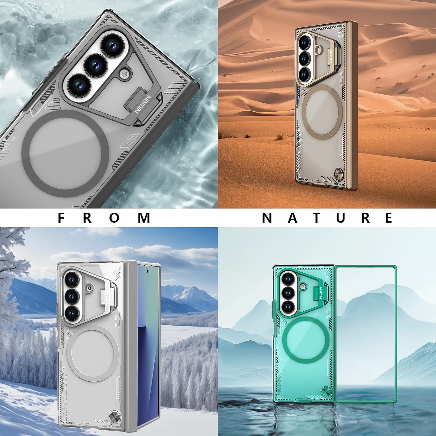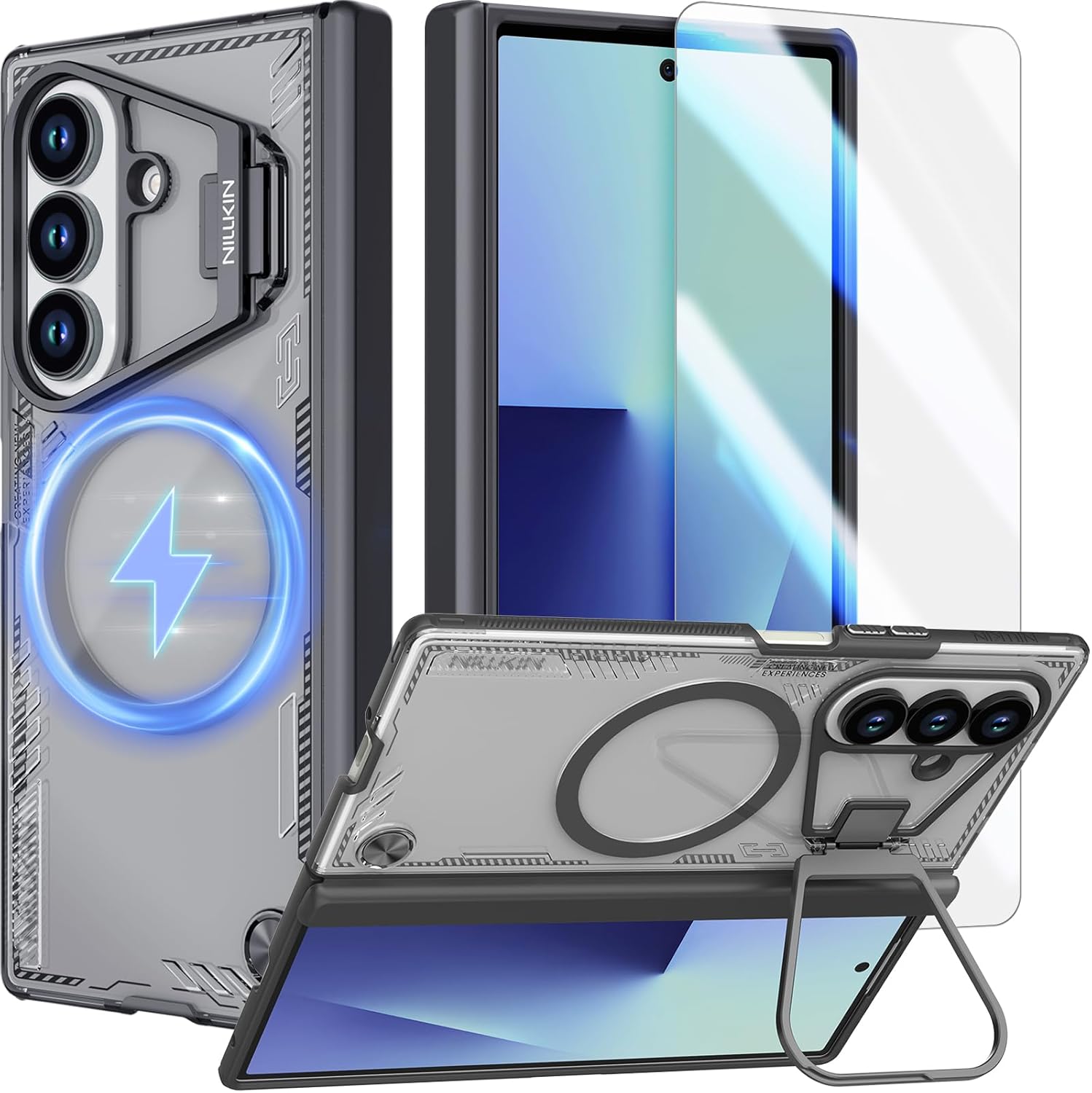 【Built-in HD Screen Protector 】- NILLKIN magsafe galaxy z fold 7 case comes with a built-in high-sensitivity 9H tempered glass protective film which provides extra protection for your front screen and preventing scratches. Featuring high light transmittance, high clarity, and accurate screen color presentation.