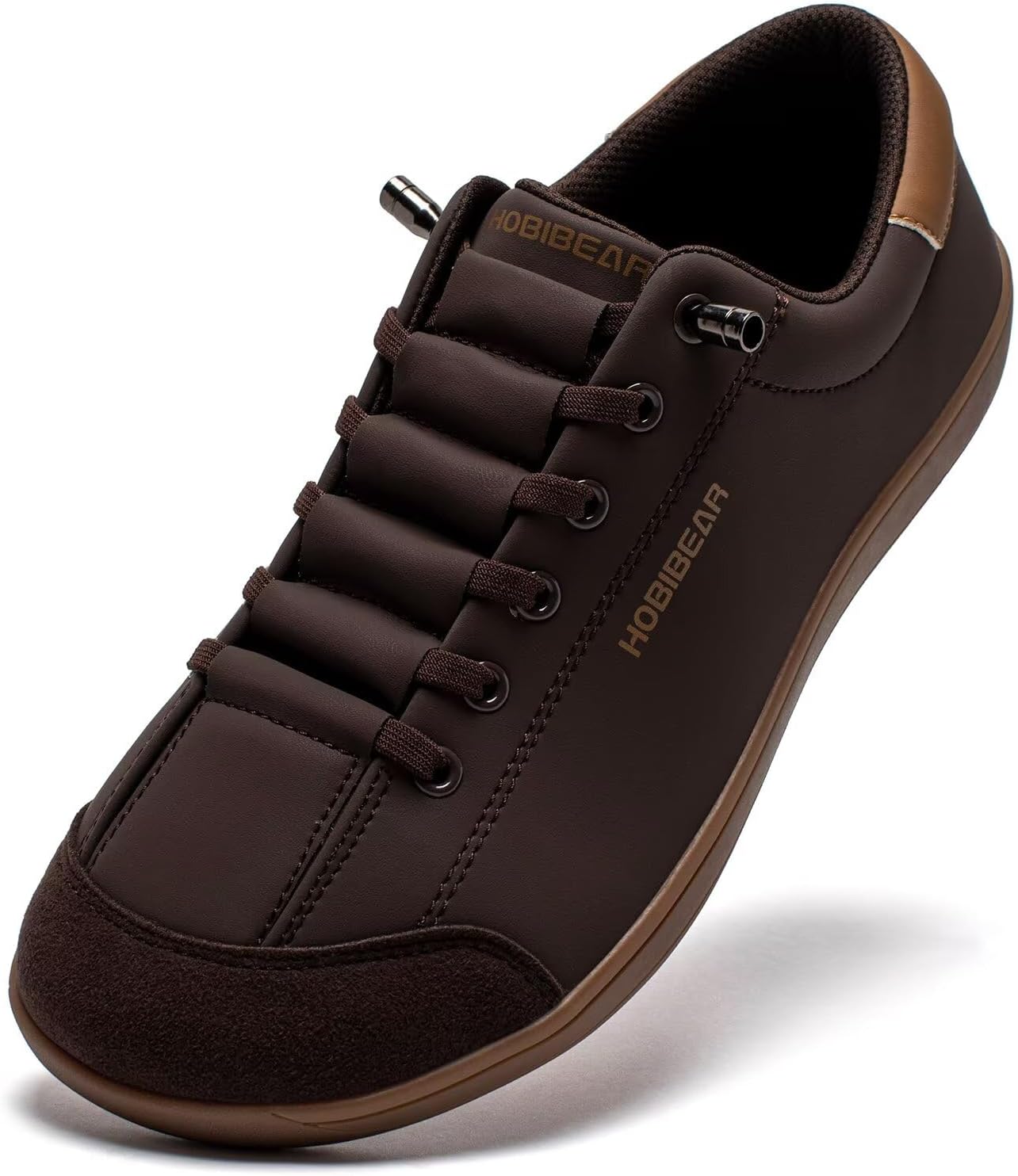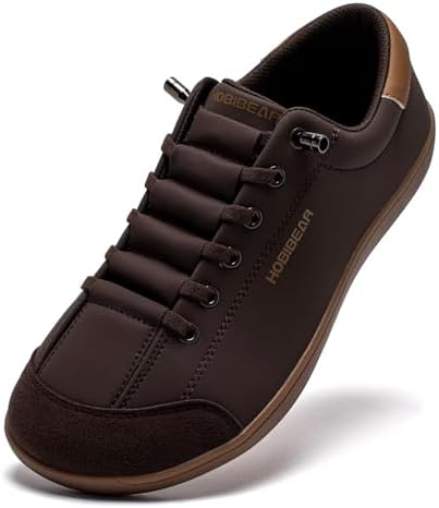HOBIBEAR Leather Barefoot Shoes Lightweight Wide Toe Box Zero Drop Slip-on Shoes for Men
