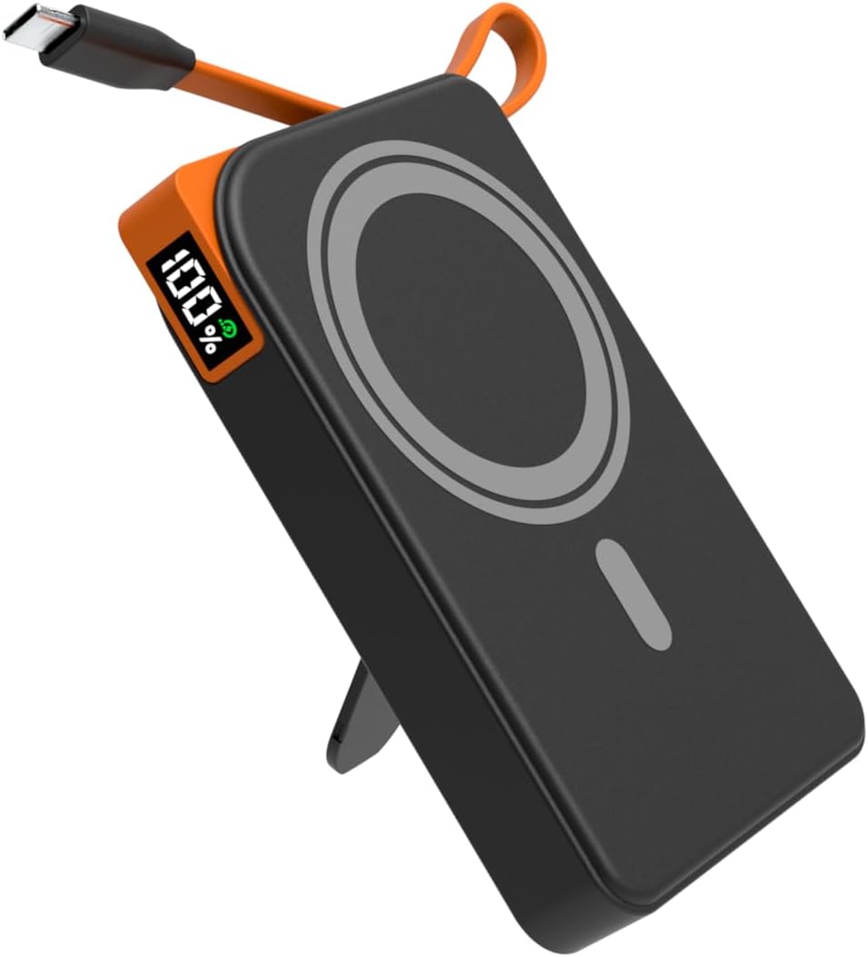 ✨【【Magnetic Power Bank with Stand】This battery pack features a foldable stand for hands-free viewing. Perfect for watching videos during meals, video calls while working, or following recipes—all while charging with MagSafe. Soft silicone surface protects against scratches with no camera blockage.