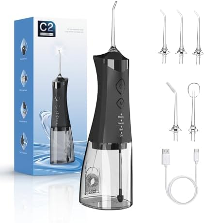 【Considerate 4 Modes & 5 Specialized Nozzles for All Needs】 The water flossers for teeth has four cleaning intensities: gentle, normal, DIY and powerful. The oral irrigator comes with 5 nozzles for different family members to use:3*standard nozzles for daily teeth cleaning(different colored rings make it easy to distinguish between diferent family members).Additional with 1*orthodontic nozzle and 1*tongue nozzle,for cleaning braces,bridge and residue;clean tongue coating. Water tooth flosser body is ergonomic, and sleek design fits comfortably in your hand, making it both a unique and stylish addition to your daily routine.