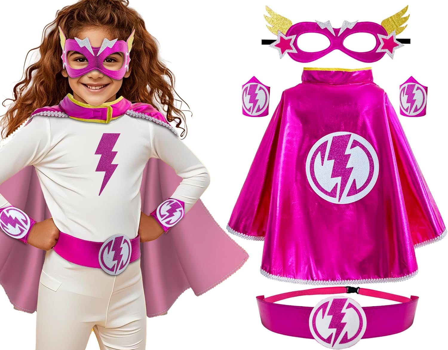 iROLEWIN Speed Super-Hero-Costumes for Boys Girls Superhero-Capes for Kids Dress-Up Mask Cuff Belt as Big-Sister-Brother-Gift