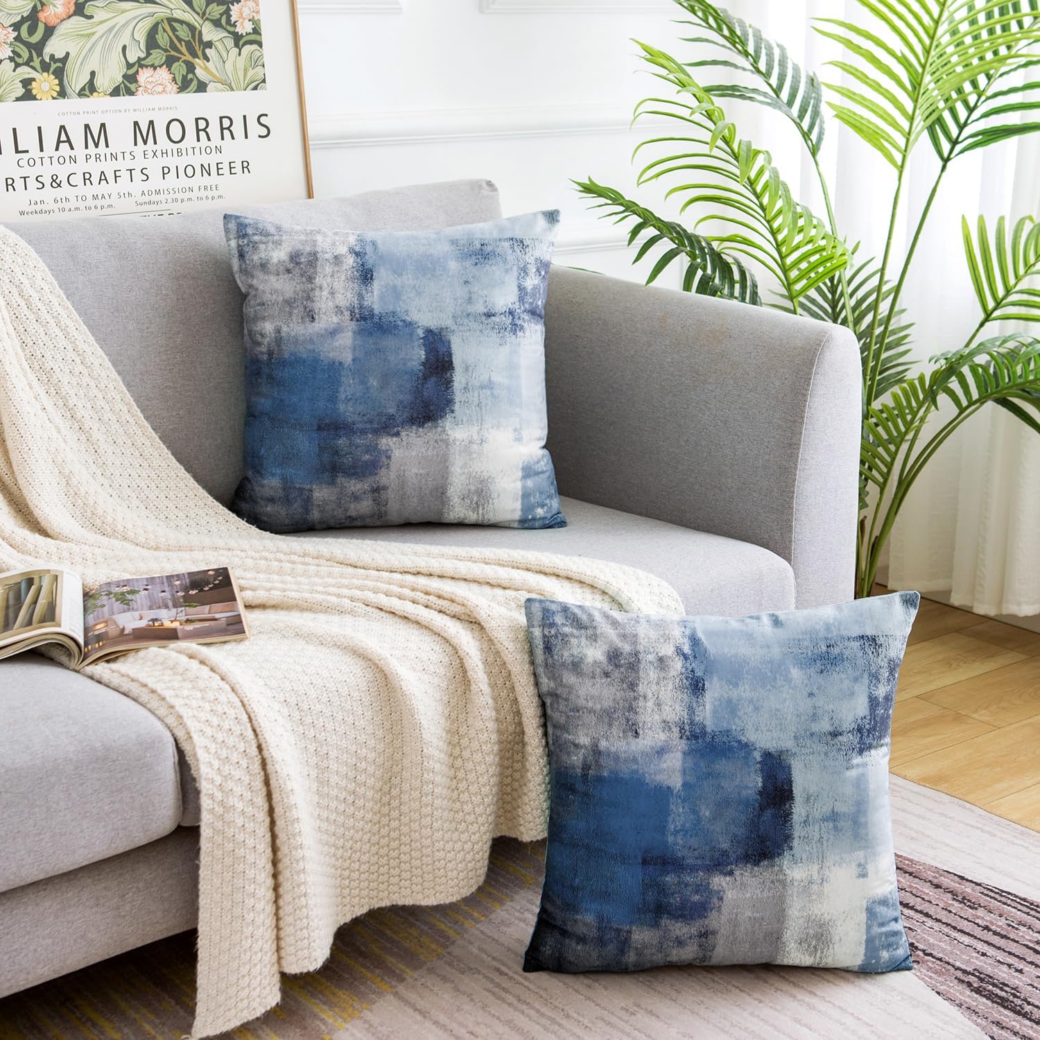 Blue Grey Art Throw Pillow Covers 20X20 Decorative Cushion Cover Cozy Soft Velvet Square Cushion Cover Set of 2 Pillowcase for Sofa Bedroom Sofa Living Room Farmhouse Home Décor