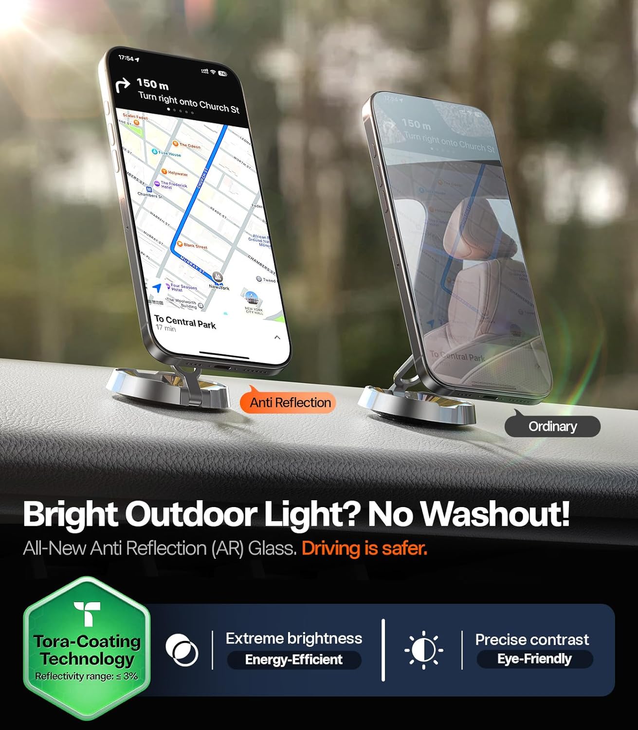 【All-New Anti Reflection (AR) Glass, Extreme Clarity.】Tora-Coating Technology, achieved via high-precision nano-coating, ensures extreme brightness and precise contrast — even under bright outdoor light, no washout! With a reflectivity range of ≤ 3%, you’ll see navigation clearly, so no need to worry about driving risks.