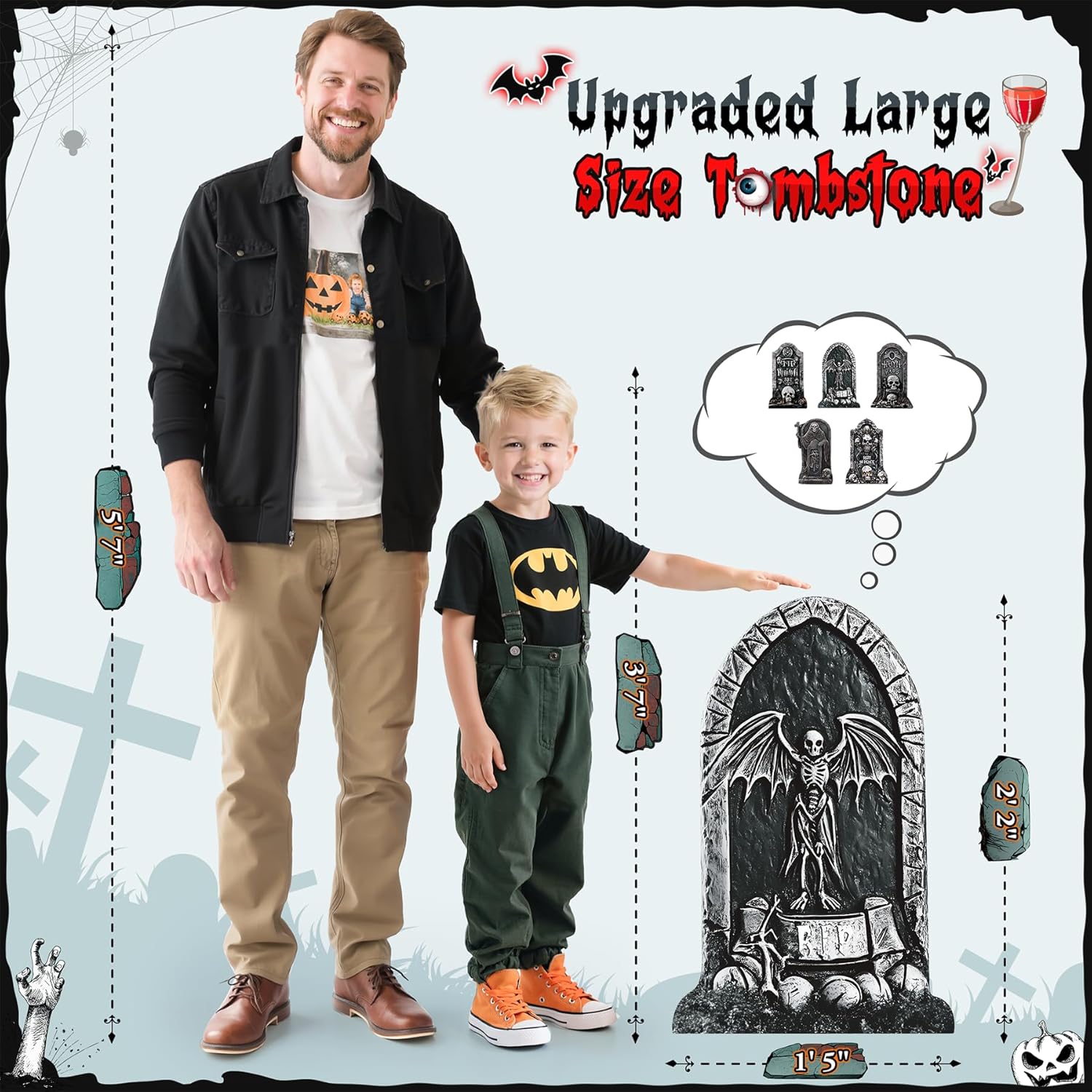 RELBRO Halloween Tombstones Graveyard Decorations, 25.6 Inch Outdoor Gravestones Realistic RIP Yard Sign with Stakes, Plastic Board, Extra Large, 5 Pcs