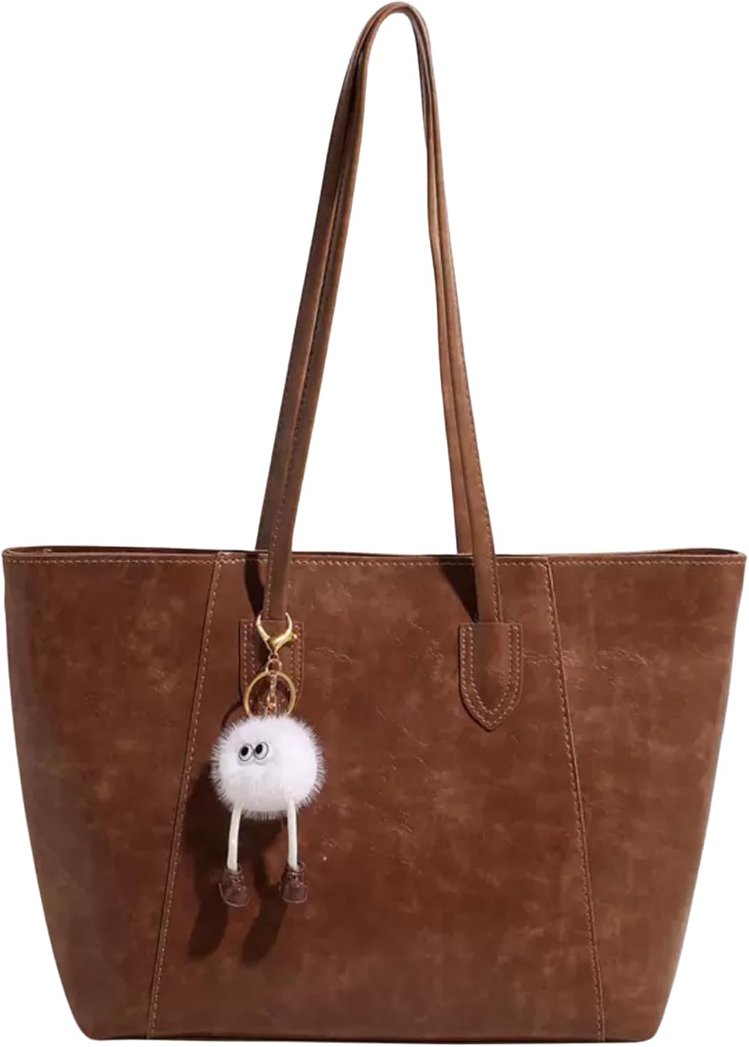 Elevate your daily style with this sophisticated vegan leather tote bag, perfectly sized for work and everyday occasions. The spacious main compartment, secured with a reliable zipper closure, offers ample room at 16.14 x 4.33 x 10.24 inches to organize all your essentials. Inside, you'll find practical pockets to keep smaller items within easy reach. The bag features durable double shoulder straps for comfortable carrying and a sleek, minimalist design enhanced by clean stitching details. A charming fluffy charm adds a playful touch to this otherwise classic silhouette. The tote's versatile structure accommodates everything from tablets and notebooks to daily necessities, making it an ideal companion for the office, shopping, or casual outings. Crafted with attention to detail, this handbag combines functionality with contemporary fashion, offering both style and practicality for the modern woman.