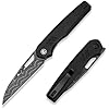 CIVIVI Guile Pocket Knife, Folding Knife for EDC, 3.25" Damascus Blade Micarta Handle with Reversible Deep-Carry Clip C24062B-DS1