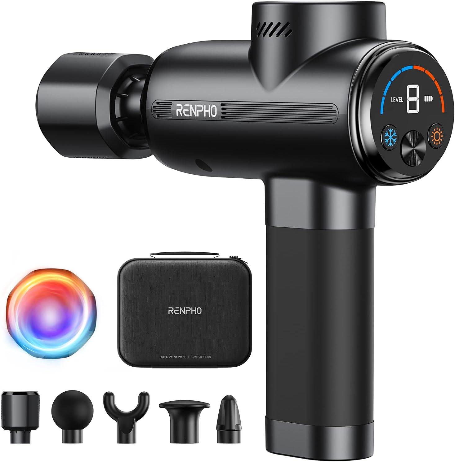 Command Your Recovery: With its integrated VA display, the RENPHO Percussion Massage Gun allows you to clearly monitor speed, battery, and temperature settings, and effortlessly switch between heat and cold therapy without interrupting your massage