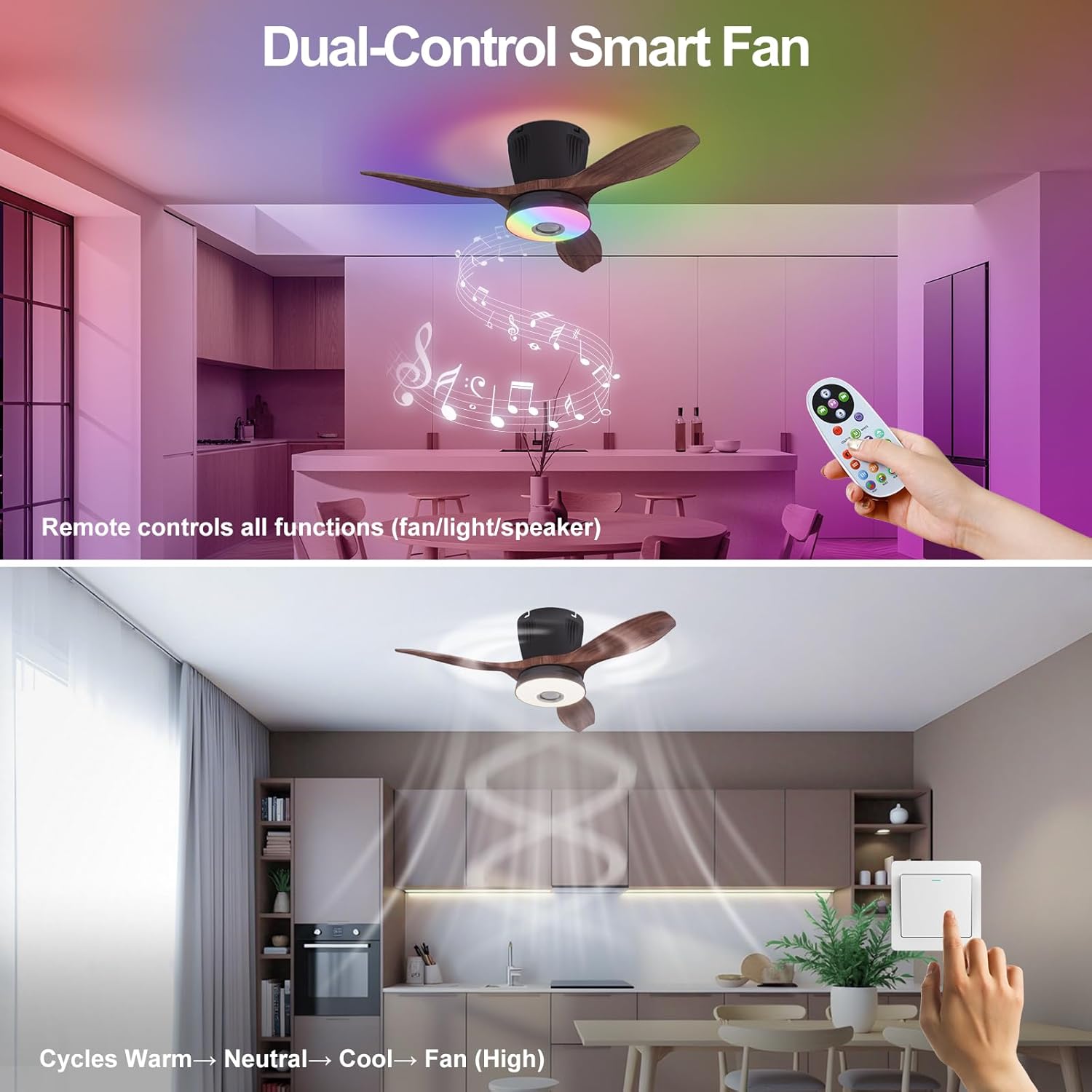 𝐃ual 𝐂ontrol 𝐒ystem: Remote controls all functions (fan/light/speaker). Wall switch cycles ceiling fan/light only. Unique ability to operate ceiling fan, ceiling light, and speaker separately or together. Use just the fan, only the light, or enjoy all features simultaneously.