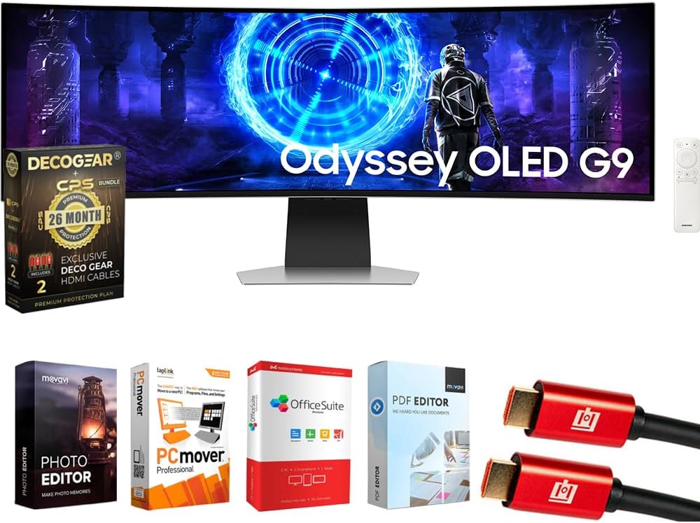 Samsung LS49DG956SNXGO 49 inch Odyssey OLED G9 Dual QHD Curved Gaming Monitor Bundle with Elite Suite 18, 2X HDMI Cable and Deco Gear CPS Exclusive 26 Month Protection Pack (BEACH-CPS-26M2000)