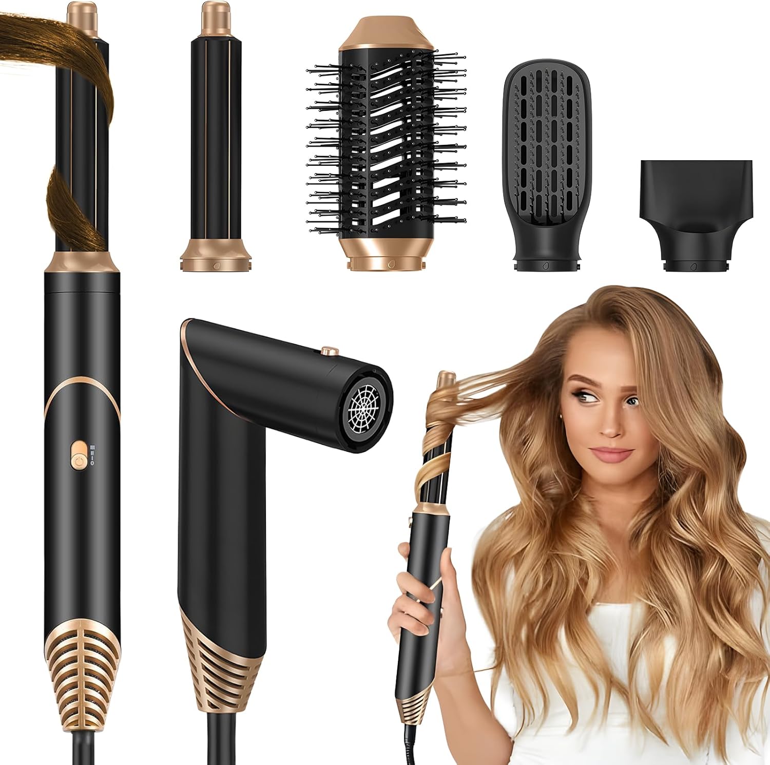 Hair Dryer Brush Set 6 in 1, Anluomania Blow Dryer Brush Foldable, Multi Negative Ionic Curl Hair Dryer Hair Styling Tools, Detachable Air Hair Styler Curling Iron for Curling, Drying, Straightening