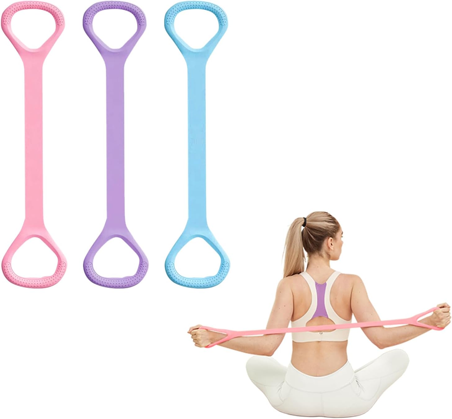3 Pcs Figure 8 Resistance Bands for Women, Arm, Shoulder, Back, Leg, Pilates, Yoga Stretching
