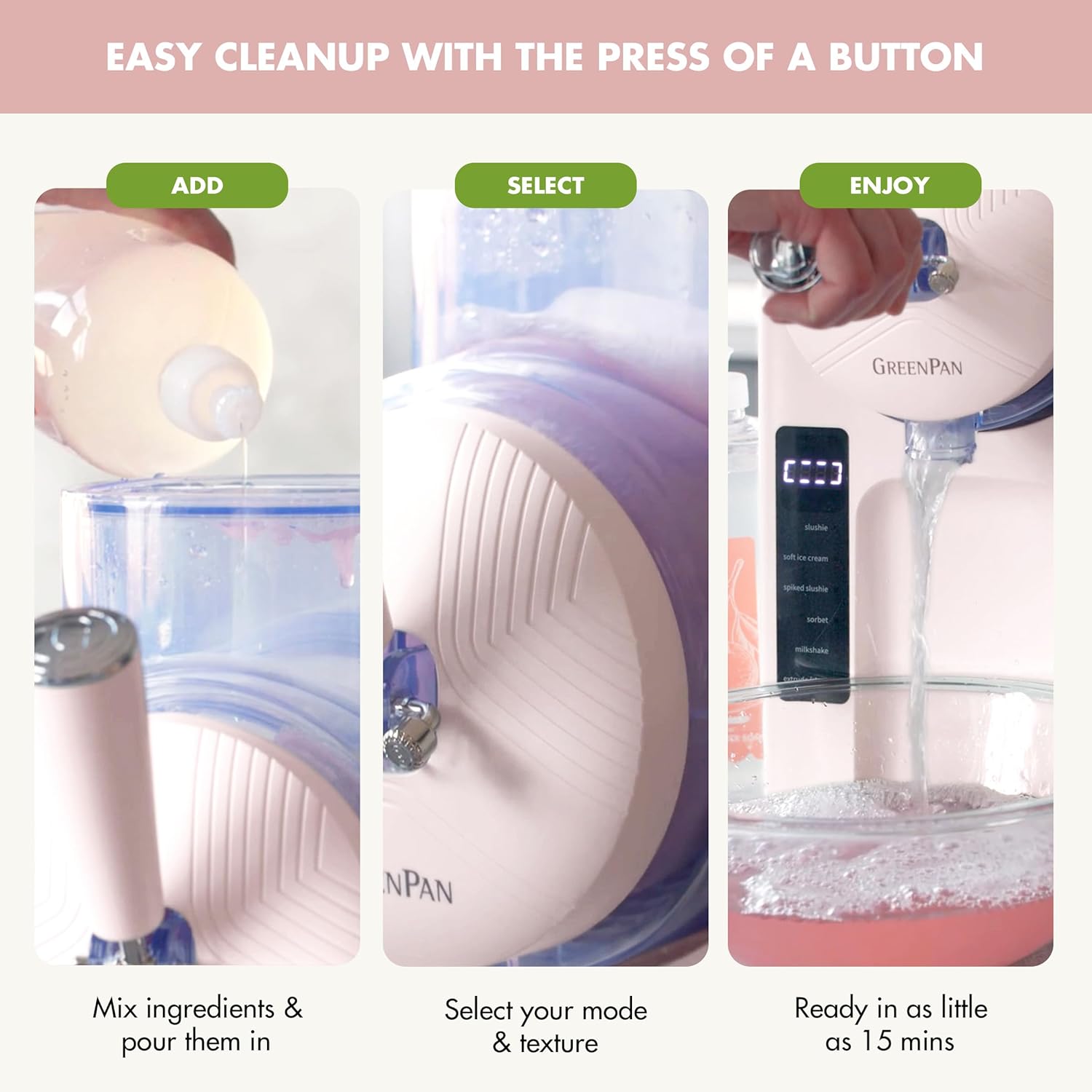 GreenPan Frost Ice Cream Machine & Frozen Drink Maker, Soft Serve, Slushie, Milkshakes & Cocktails, No Freezer Needed, 15-in-1, 7 Textures, Quiet & Rapid, Easy Clean, Family Size, Strawberry Pink