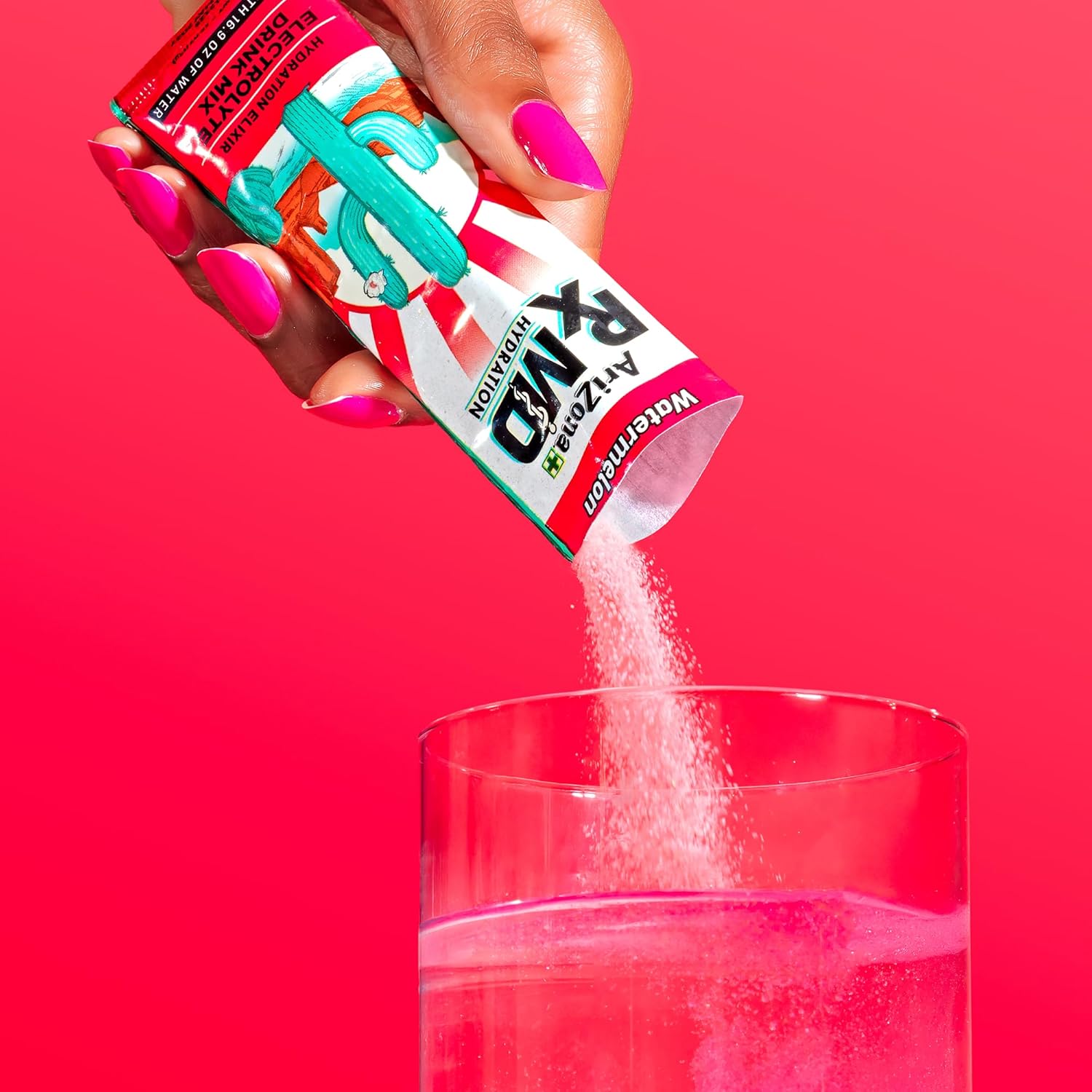 Hydrate with AriZona Watermelon RX MD Stix have powerful benefits includes 200% of your daily value of B12, 920+ mg of electrolytes, and 70 mg of magnesium. Hydration