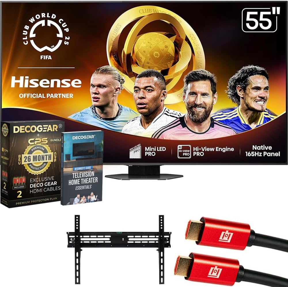 Hisense 55" U8 Series Mini-LED ULED 55U8QG, QLED, Full Array Smart TV Bundle with CPS Exclusive 26 Month Protection, HDMI Cable, Wall Mount and Deco Gear Complete Home Theater Beginner's Guidebook