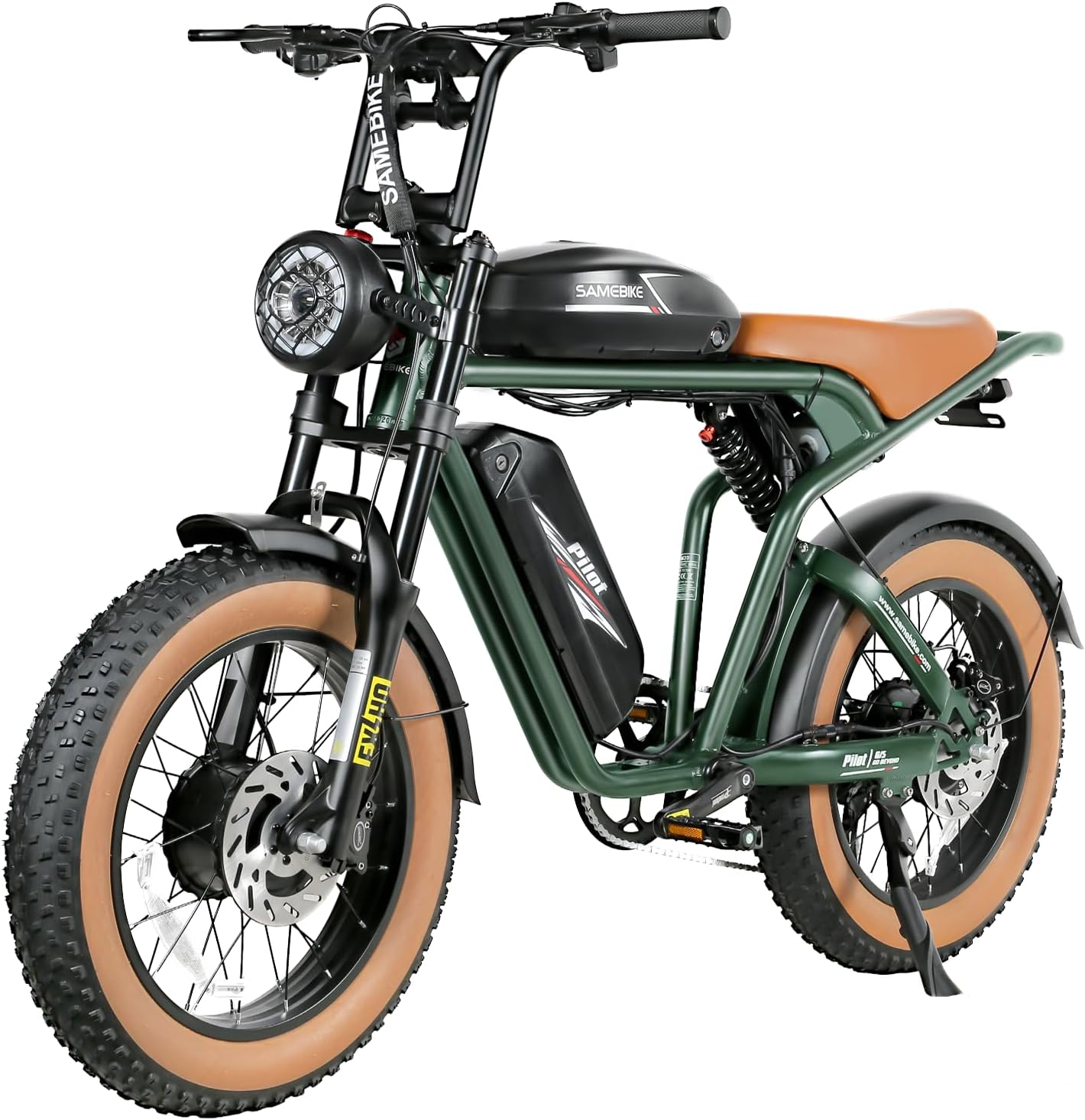 SAMEBIKE Adult Electric Bike & Dirt Bike with Dual Motor & Dual Battery, 4.0" All Terrain Fat Tire E-Bike, 3000W Peak, 34 MPH, 180 Miles Range, 48V 1728WH, 7-Speed Electric Motorcycle