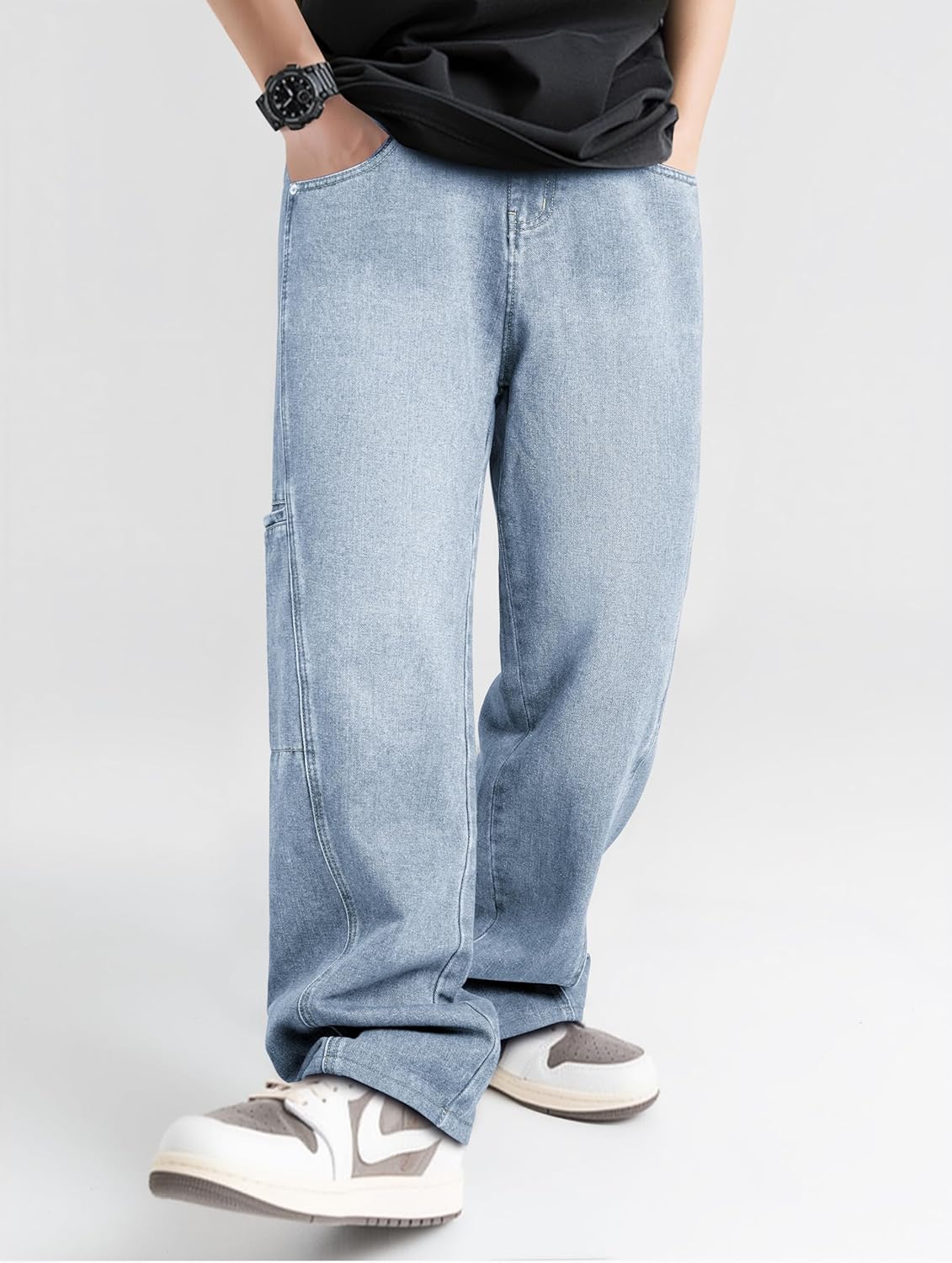 EMMIOL Men's Baggy Wide Leg Jeans,Y2k Hip Hop Skater Denim Cargo Pants Casual Loose Fit,Relaxed Long Trousers