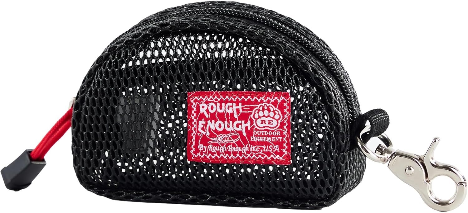 Rough Enough Small Coin Purse Pouch Change Card Holder with Zipper Clip on Buckle for Men Women Black Mesh