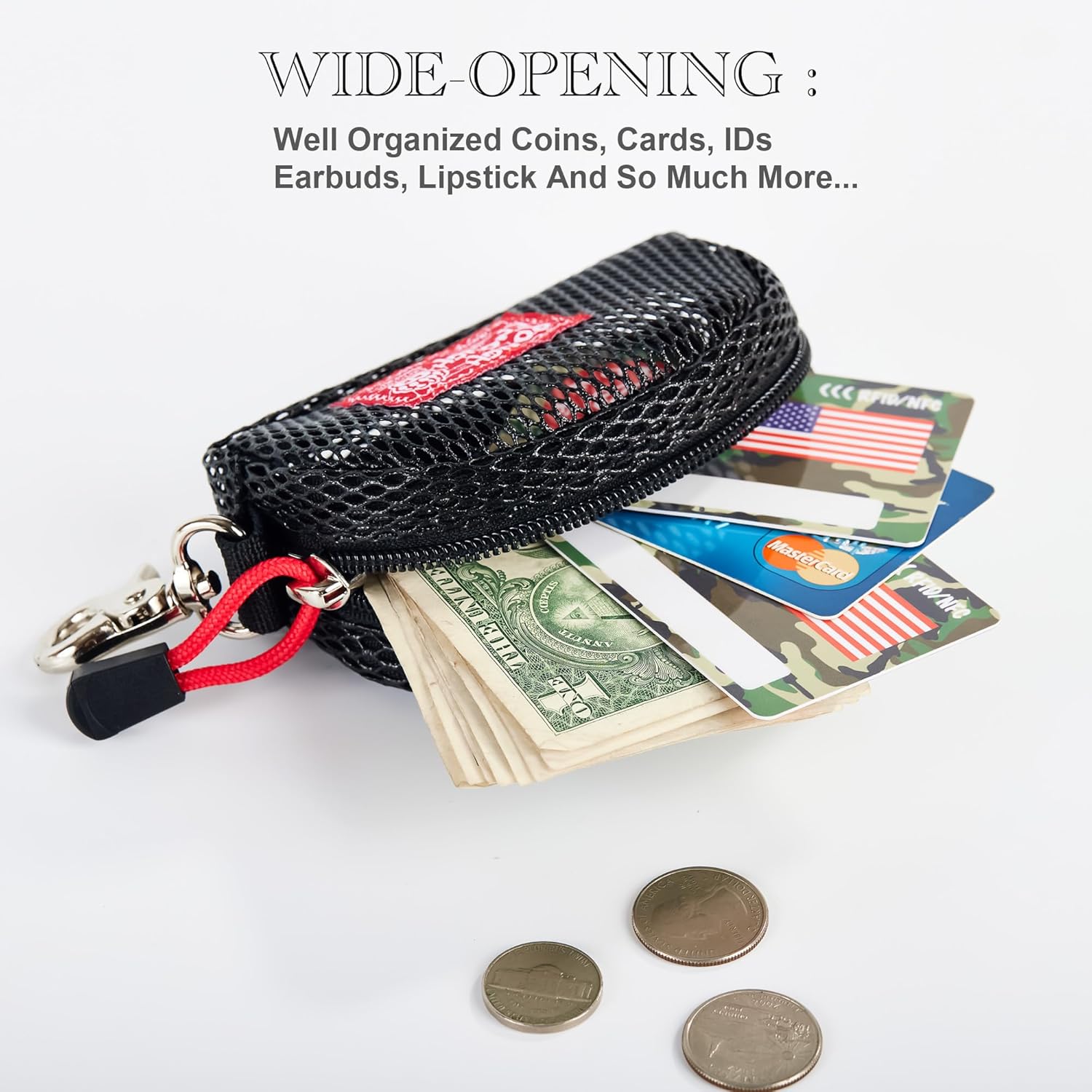 Quality Mesh Construction: Crafted with premium US mesh, reinforced piping all around and stitching for lasting use. This small coin purse pouch offers reliable performance day after day, holding up beautifully to daily essentials
