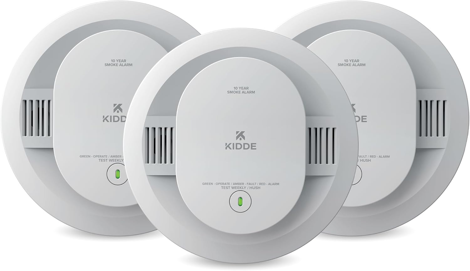 Kidde Smoke Detector, 10-Year Battery Powered, LED Warning Light Indicators, 3-Pack