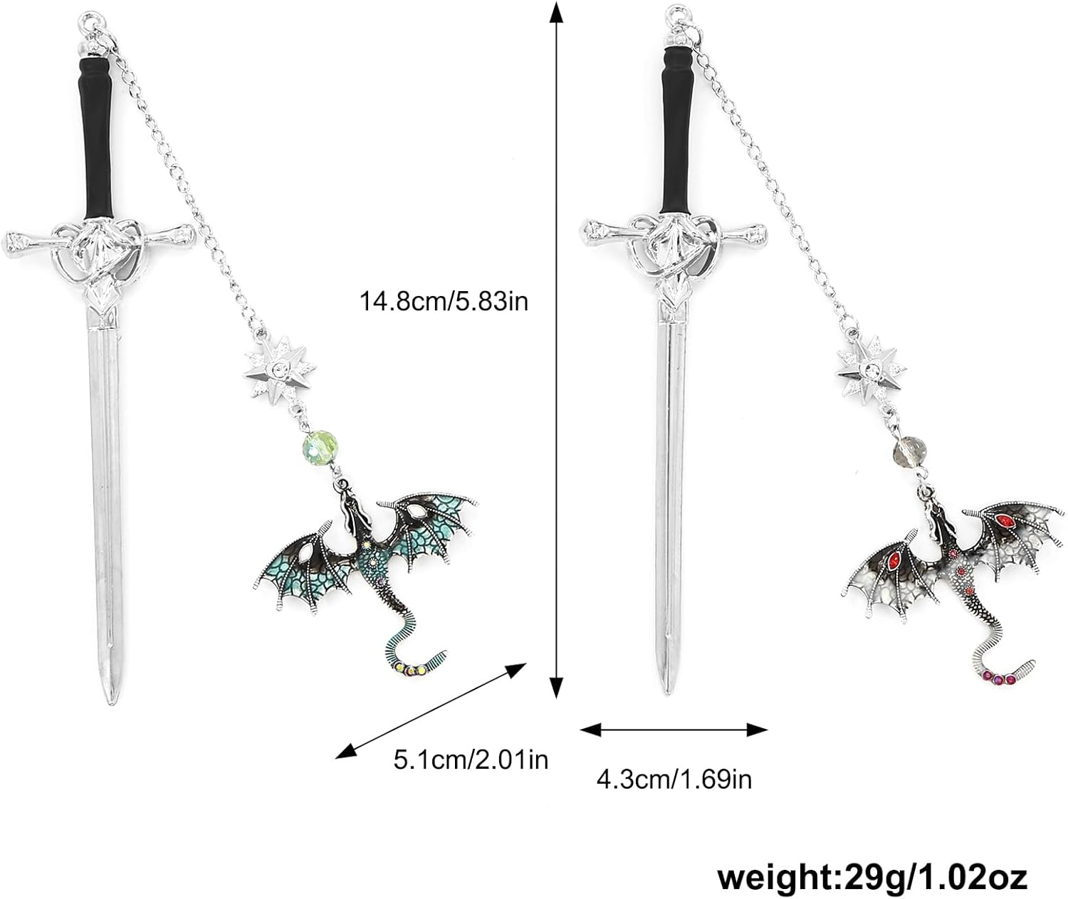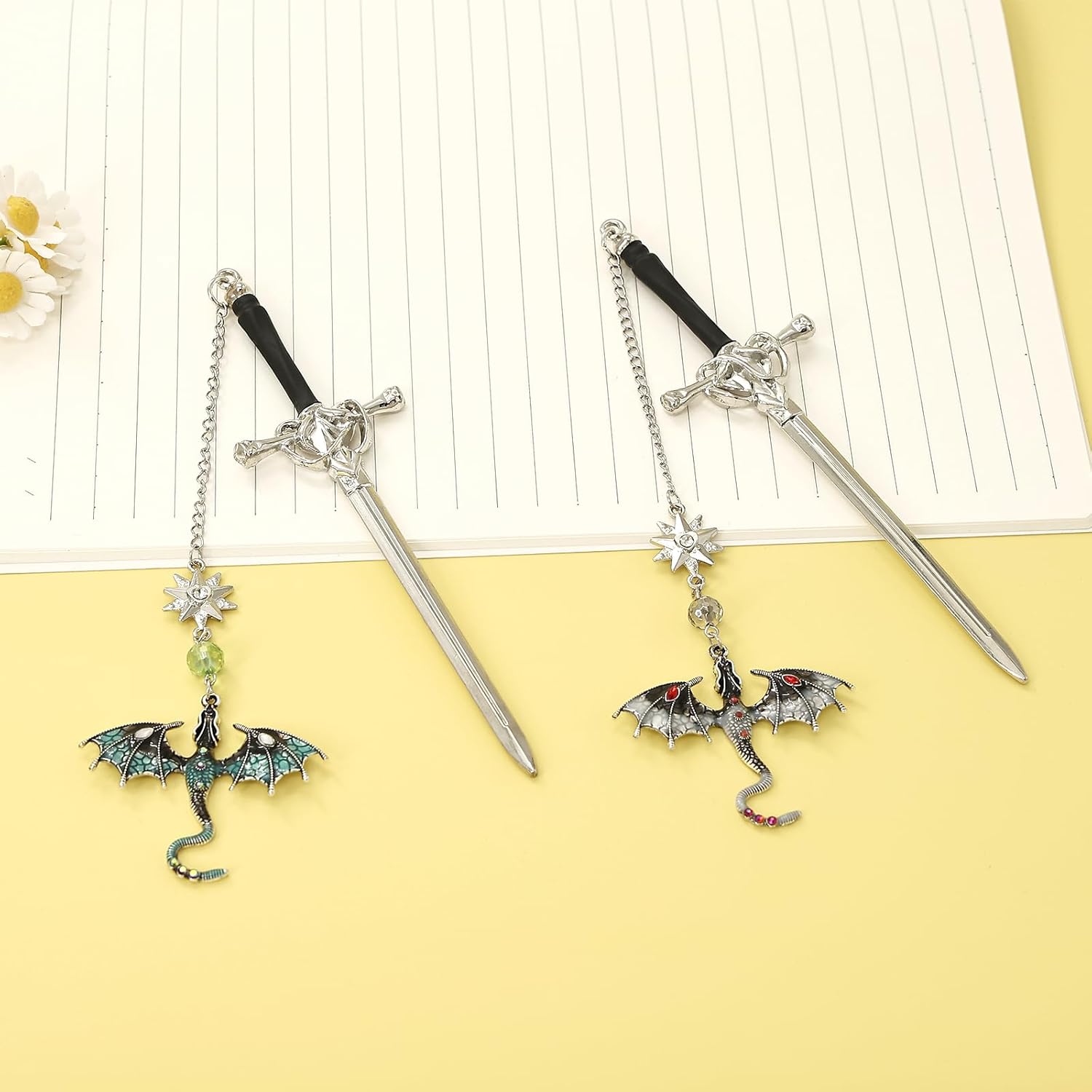 2 Pieces Dragon Sword Bookmark, Metal Bookmark, Fantasy Metal Bookmarks for Book Lovers Novel Fans Boys Readers Student Teacher School Accessories