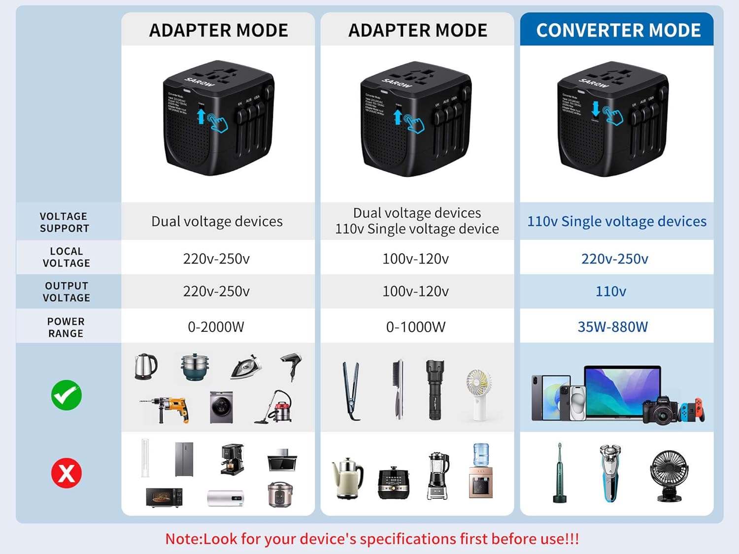 Travel Converter Adapter Voltage Converter That Steps Down 220 Volts to 110 Volts for use in Over 200 Countries,Including The U.S., U.K., Europe, and Australia