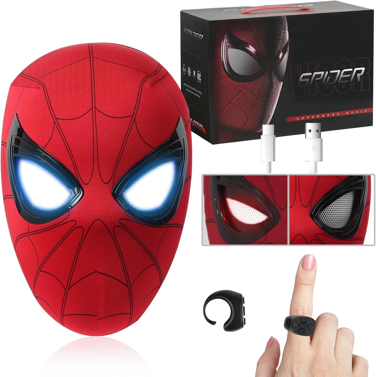 Superhero Spider Mask, Role Play Toys with LED Lights Movable Eyes - Remote Control, Christmas Birthday Gift
