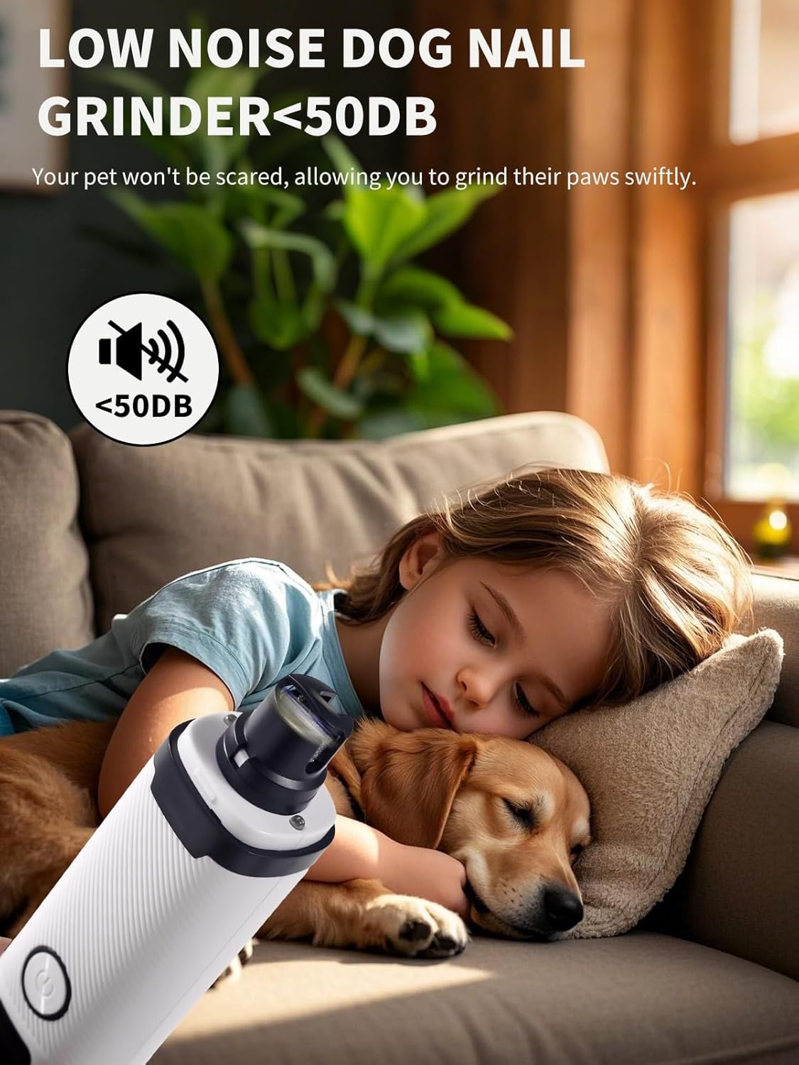 Ultra-Quiet Operation & Minimal Vibration: Dog toenail grinder engineered with advanced noise-reduction technology, our grinder operates at whisper-quiet levels (below 50dB) and reduces vibrations by 50% compared to standard models. Keep pets calm and focused during grooming sessions for a stress-free experience.