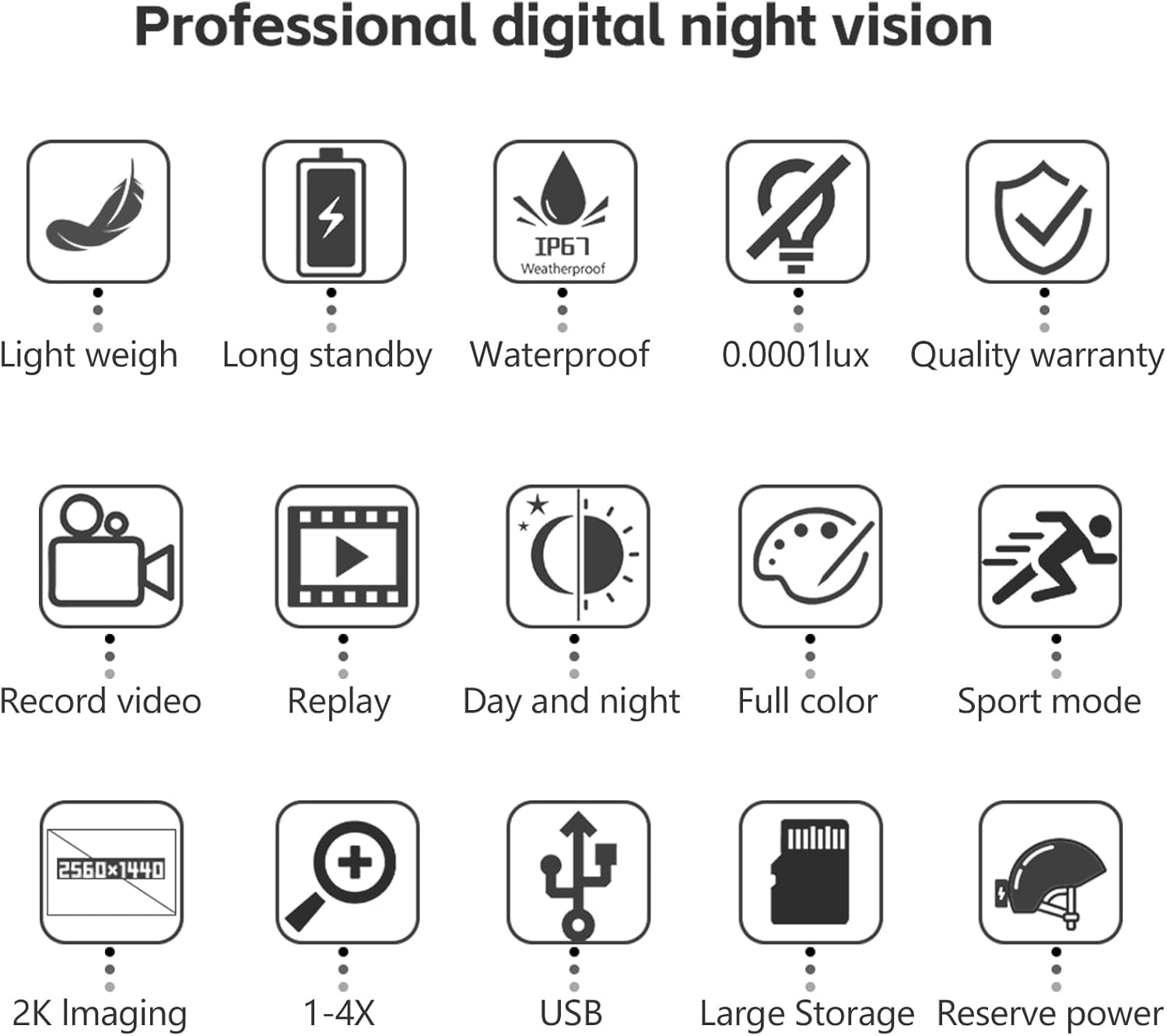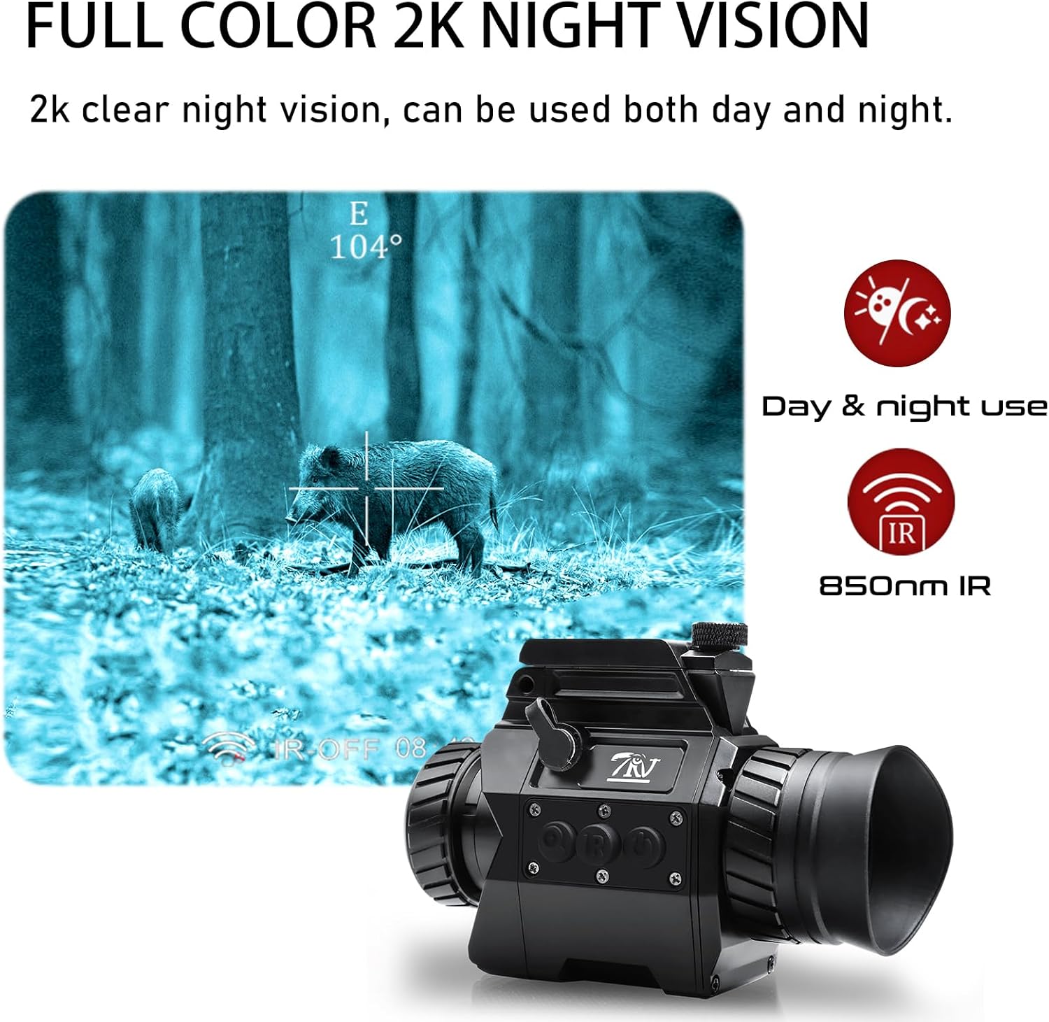 【2.5K STARLIGHT CLARITY】Infrared night vision goggles with ultra-low-light CMOS sensor (2688x1520) detect targets up to 300m. 40Hz frame rate ensures smooth imaging in total darkness