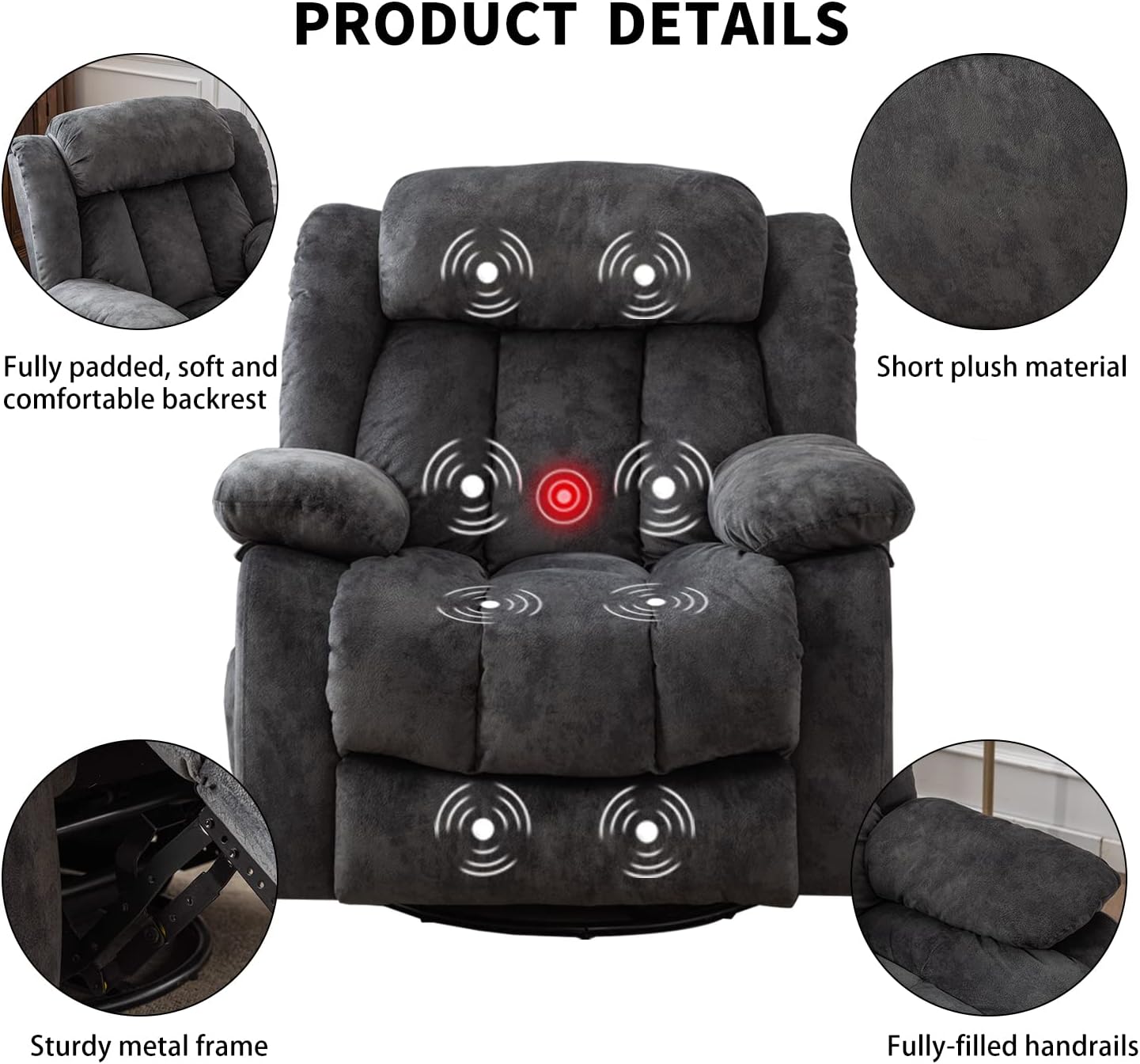 Mordern Swivel Rocker Recliner: We added 360º swivel function for massage rocker recliner. With the gentle rocker recliner motion and pillow top armrest and soft backrest, you'll enjoy your rest time in this rocker recliner chair. Also the America style modern design bring a fresh element into your living room.