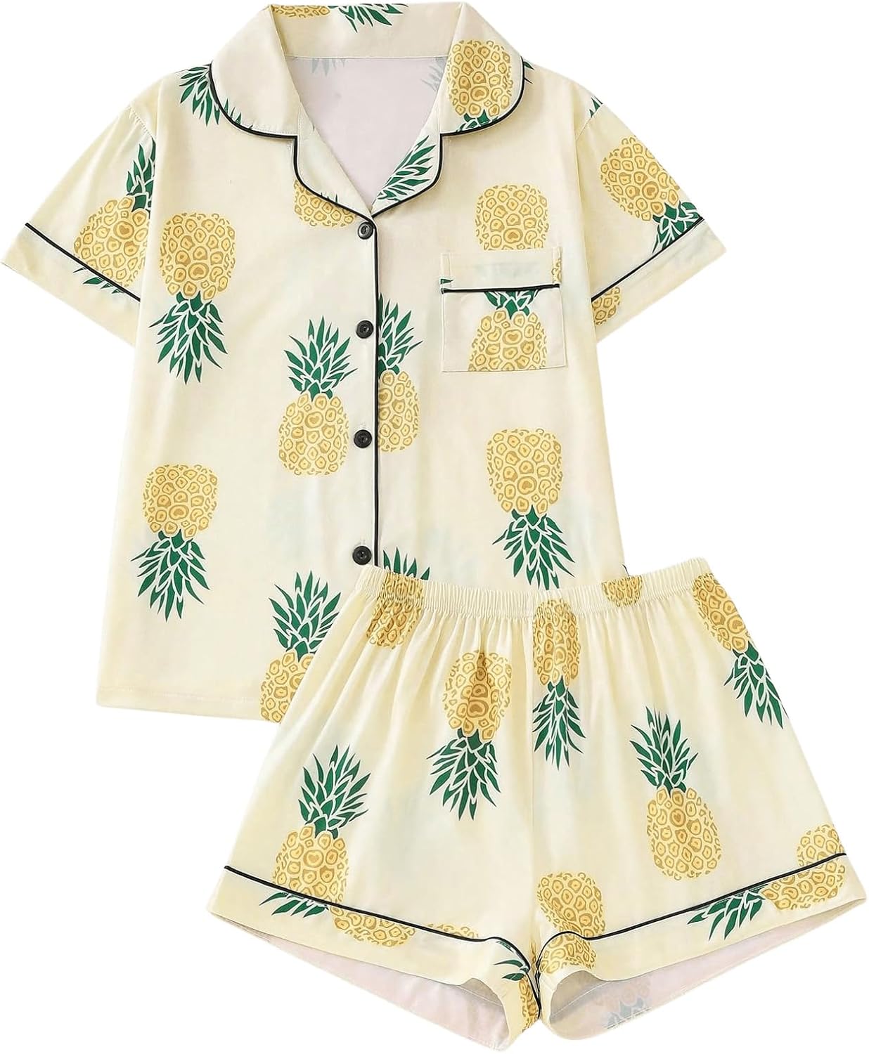 SOLY HUX Women's Short Pajamas Set Cute Printed Button Short Sleeve Shirt with Shorts Sleepwear PJs Set