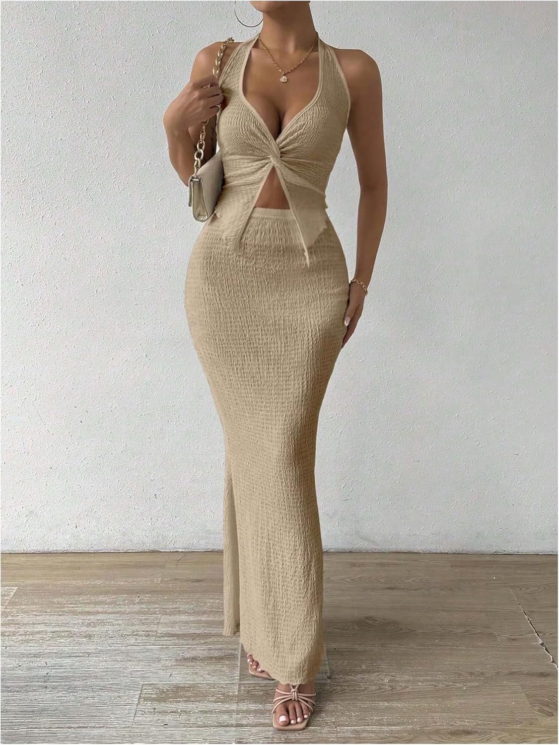 SOLY HUX Women's Two Piece Outfits Twist Front Halter Cami Tops and Skirt Summer Set