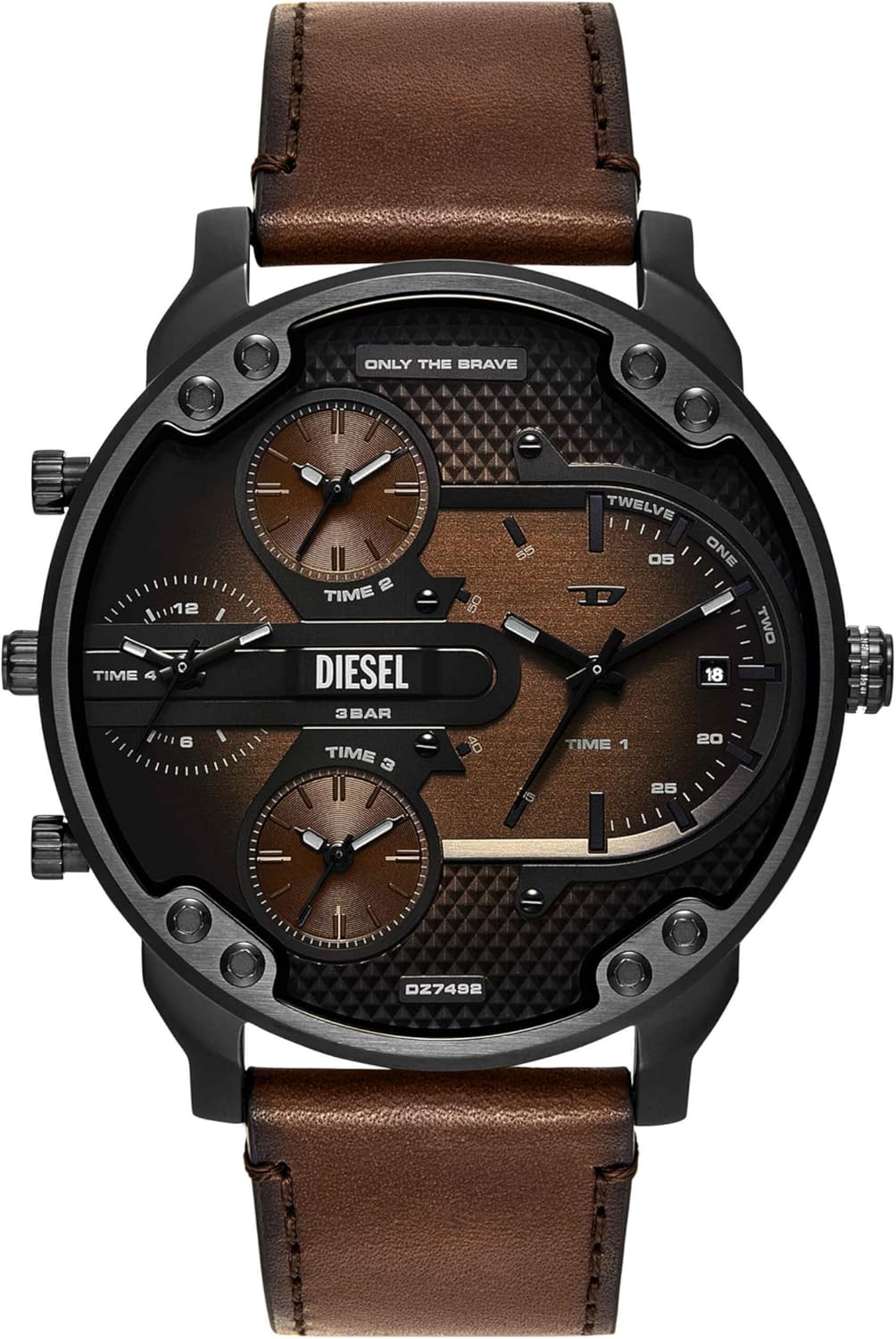 Diesel Men's Mr. Daddy Slim Multi-Movement Brown Leather Watch (Model: DZ7492)