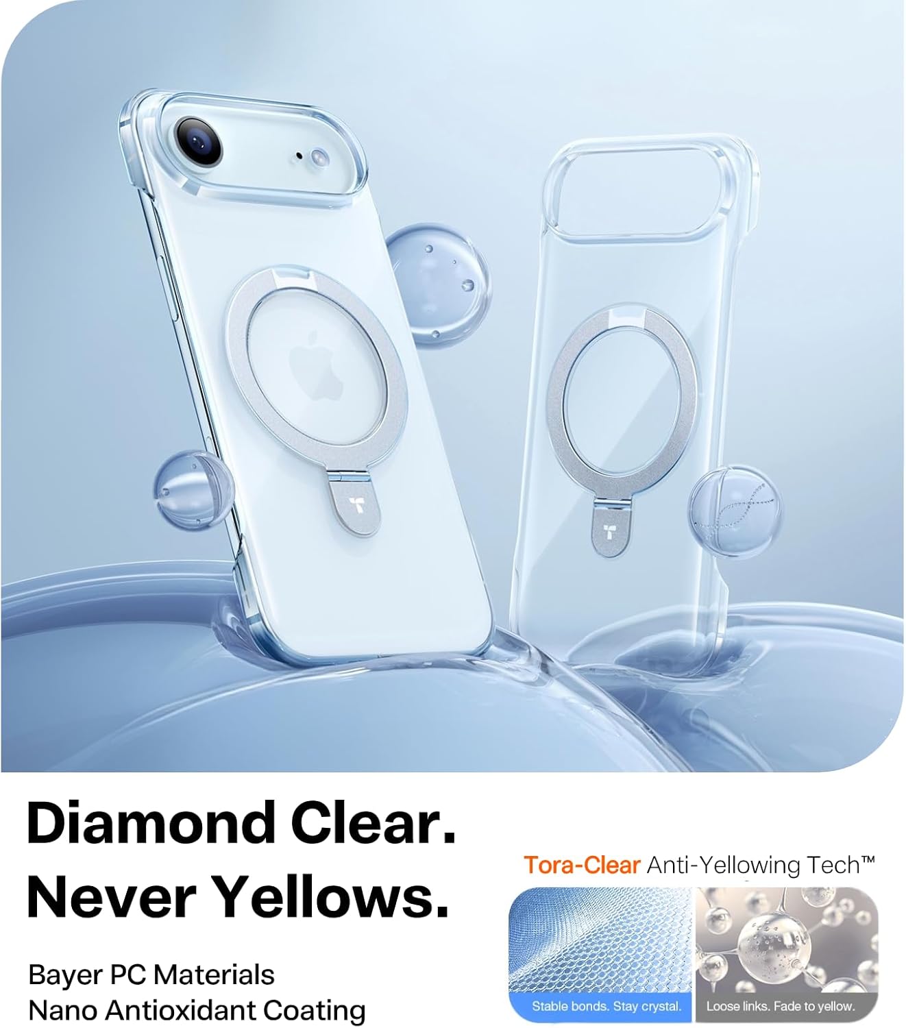 TORRAS Slim Magnetic Stand for iPhone Air Case, Open-Edge Frame with Thin Fit, No Case Feel, Fit for MagSafe, Anti-Yellowing Phone Case for iPhone 17 Air, Anti-Scratch Protection, Clear