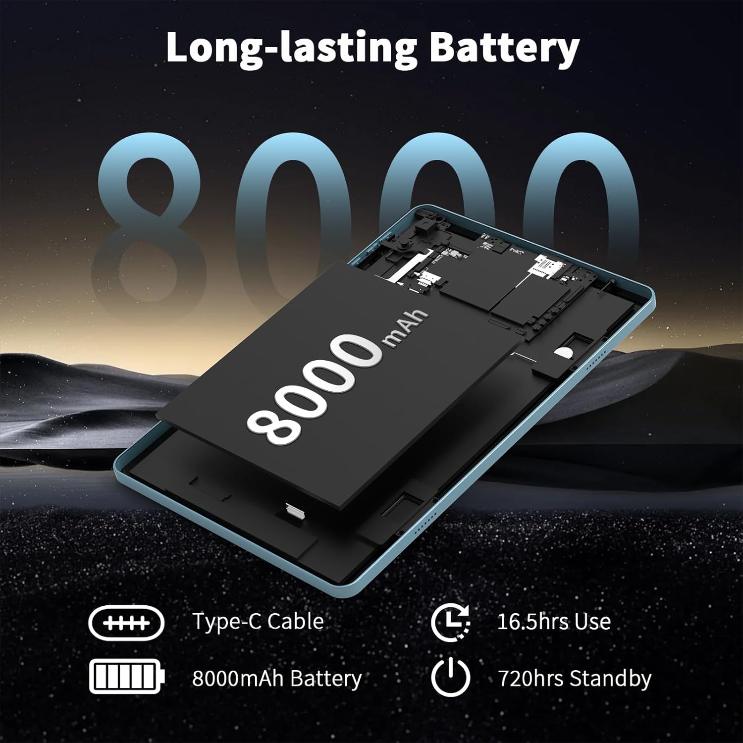 【8000 mAh Battery & Stay Connected】With an 8000mAh battery, the tablet pc ensures long-lasting usage, making it great for travel, commuting and outdoor activities.5G WIFI and Bluetooth 5.0 provide faster network and stable connections.