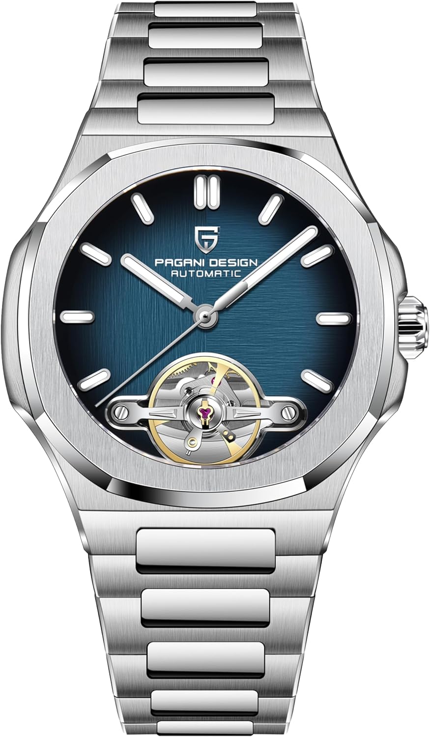 RollsTimi Pagani Design YS025 Men's Automatic Watch Skeleton Dial Tourbillon-Style E3251 Movement Sapphire Crystal 100M Waterproof Stainless Steel Luxury Sports Watch