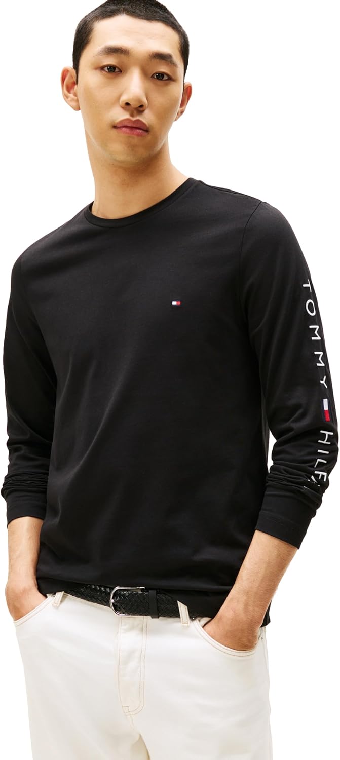 Tommy Hilfiger Men's Long Sleeve Cotton Graphic T-Shirts with Embroidered Logo