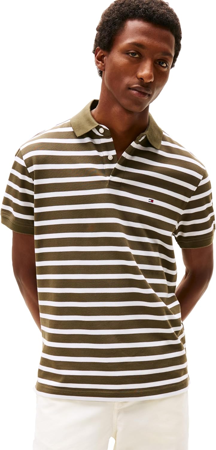 Introducing Tommy Hilfiger's iconic polo shirts for men, crafted from premium organic cotton and stretch fibers for optimal shape retention and comfort. Renowned for its timeless cut, sharp aesthetic, and comfortable fit, this best-selling polo remains a staple year after year. Tommy Hilfiger's polo shirts boast a blend of premium cotton and stretch fibers, making them the go-to choice for men seeking both style and functionality. Perfect for golfing with its natural breathability and stretch, this polo offers unparalleled comfort on and off the course. Designed with a classic fit that's roomier through the chest and shoulders, this button-down polo exudes a casual yet polished look. Pair it effortlessly with your favorite Tommy Hilfiger shorts, pants, jeans, or jackets for versatile styling options suitable for any occasion, whether it's a casual outing or a formal event. Ideal for daily wear, work, school, events, vacation, or sports like golf and tennis, this men's polo is a wardrobe essential. Treat yourself or surprise a loved one with this timeless piece, perfect for fathers, brothers, boyfriends, husbands, sons, or friends. Elevate your everyday style with the unbeatable quality and sophistication of Tommy Hilfiger's men's polo shirts.