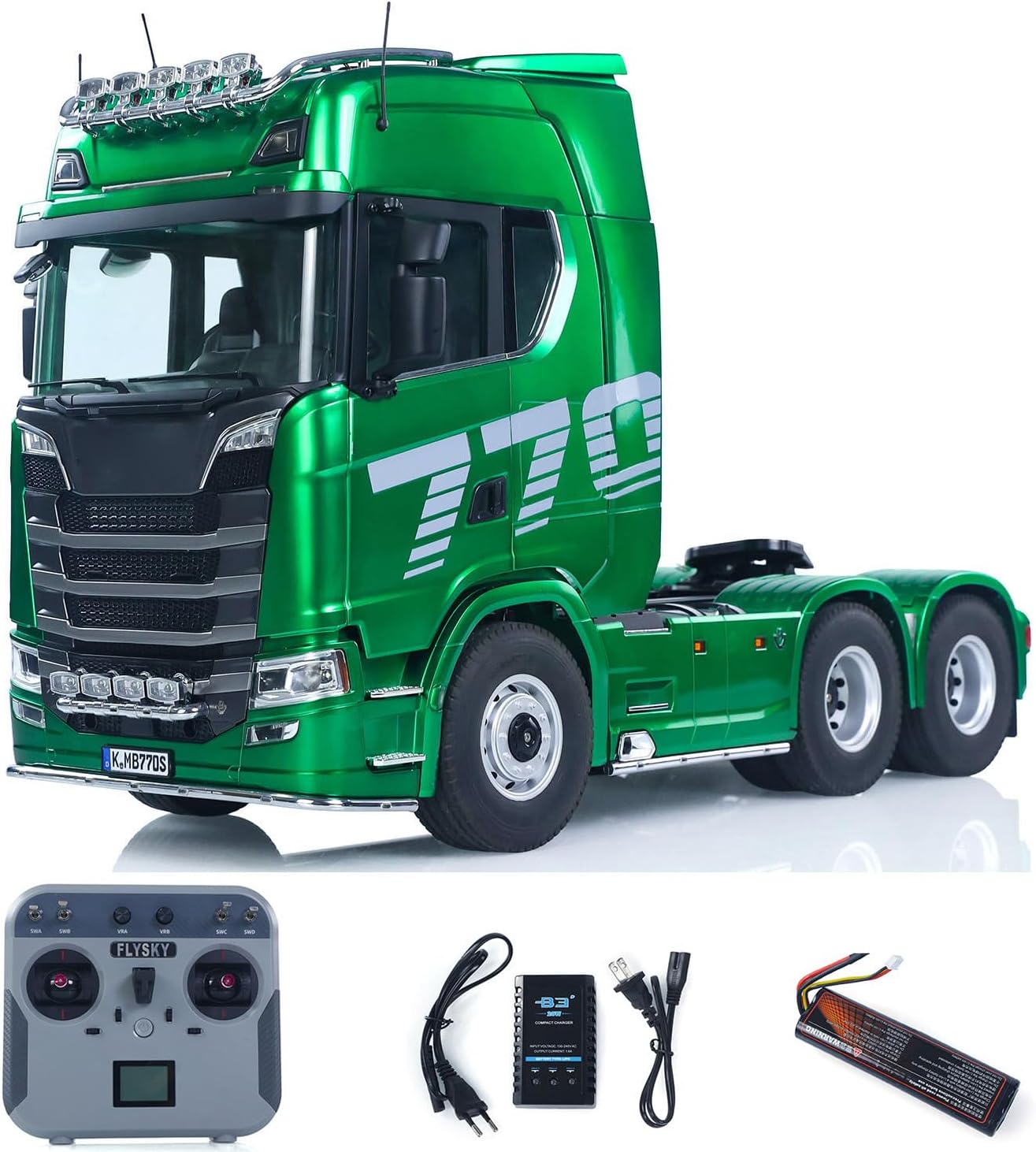KABOLITE 1/14 6x6 770S 100 RC Tractor Truck Lorry Car 2Speed Gearbox Differential Lock RTR Model for Adult(Green), Fit with Semi Trailer Flatbed 1502 TH16848, 1/14 2Axle Trailer TH01024