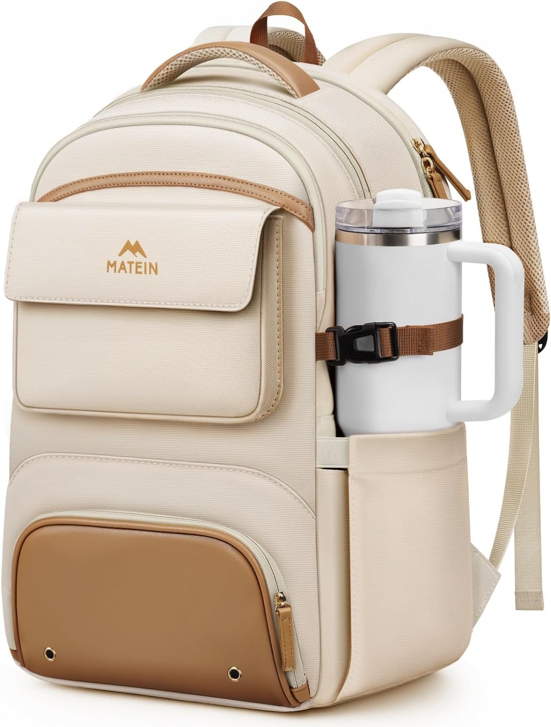 MATEIN TSA Approved Personal Item Backpack with Rain Cover, Waterproof Small Travel Laptop Backpack with Shoe Compartment, 15.6 inch Womens Work Bag with Large Cup Holder, Traveling Casual Daypack