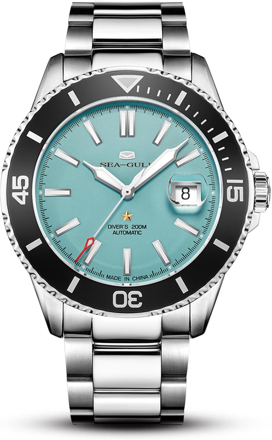 SEA-GULL Seagull Automatic Watch for Men Stainless Steel Strap 200M Waterproof Mechanical with Calendar Luminous Business Casual Mens Diving Wrist Watches