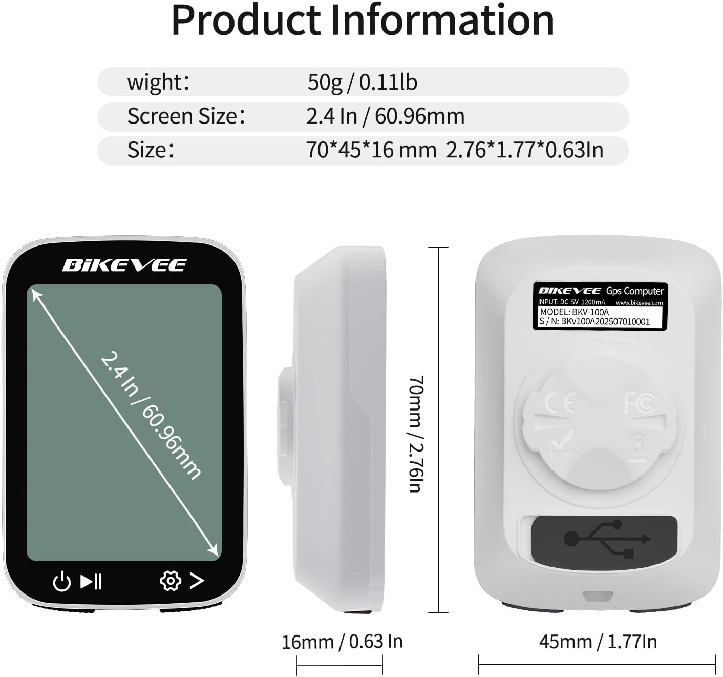 28H Cordless Battery Life: Equipped with a 650mAh rechargeable battery, the Bikevee GPS Bike Computer delivers up to 28 hours of continuous use, eliminating cycling speedometer and bike odometer power anxiety. Ideal for long rides or multi-day adventures