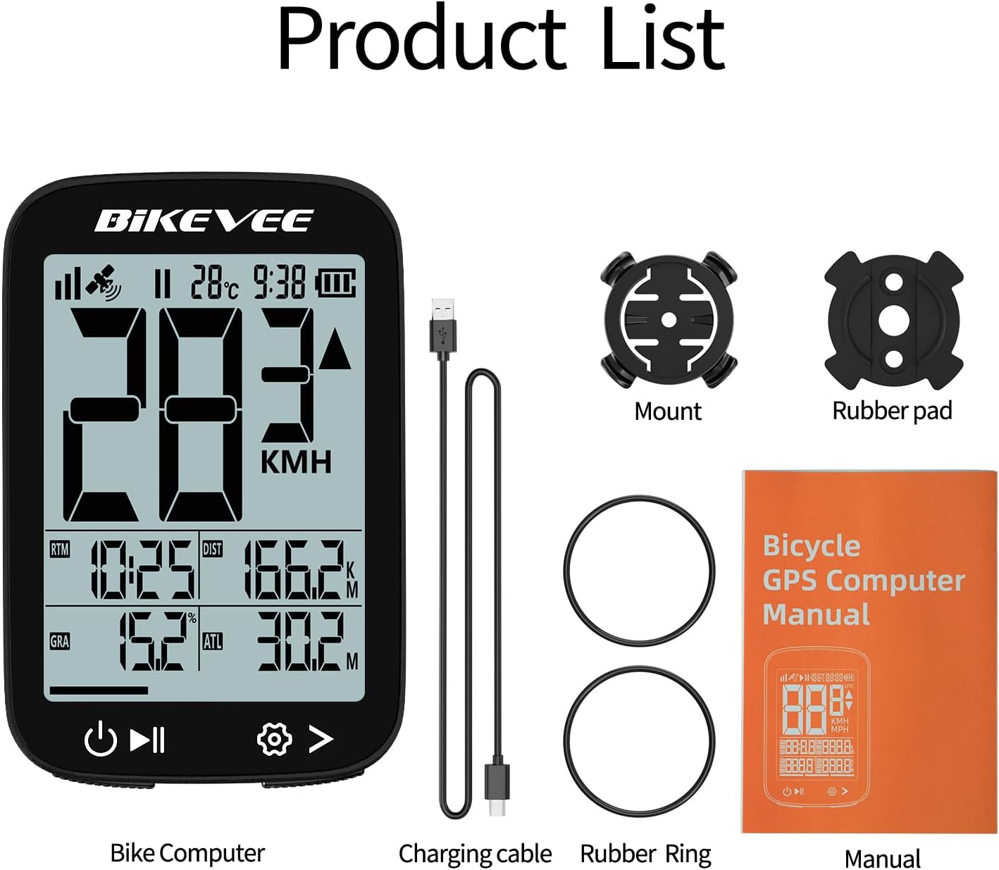 28H Cordless Battery Life: Equipped with a 650mAh rechargeable battery, the Bikevee GPS Bike Computer delivers up to 28 hours of continuous use, eliminating cycling speedometer and bike odometer power anxiety. Ideal for long rides or multi-day adventures