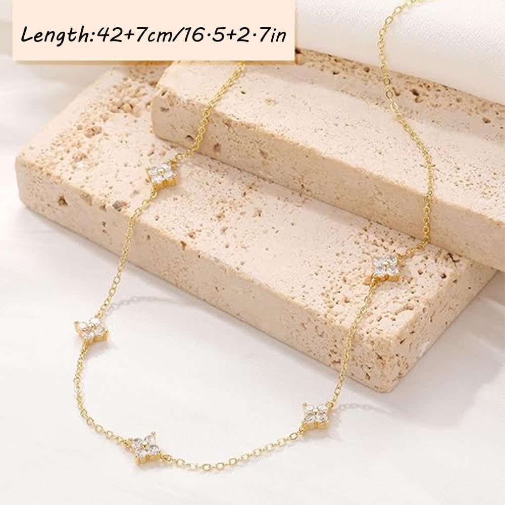Dainty Gold Necklaces for Women Trendy Non Tarnish Gold Plated Cubic Zirconia Necklace Layered Cute Flower Round Station Choker Necklace Stack for Wedding Prom Brides Jewelry