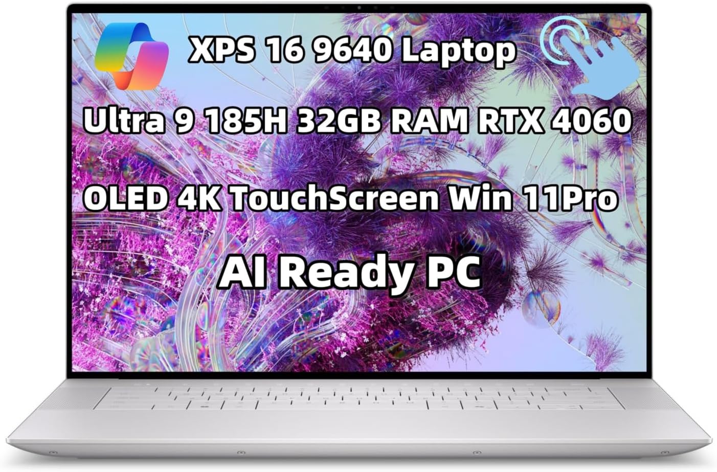 New XPS 16 9640 Powerful AI Laptop 16.3" OLED UHD+ (3840x2400) TouchScreen 16-Cores Ultra 9 185H 32GB RAM 1TB SSD Geforce RTX 4060 Graphics Copilot Webcam Backlit Fingerprint Thunderbolt 4 Win 11Pro