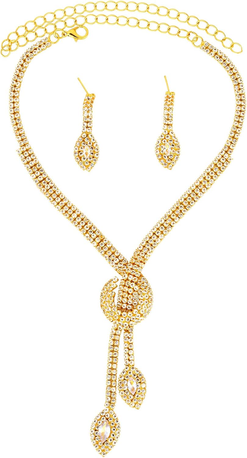 Rhinestone Bridal Wedding Jewelry Set, Gold Glitter Crystal Necklace with Earrings Formal Jewelry Set for Women Brides Prom Costume Accessories