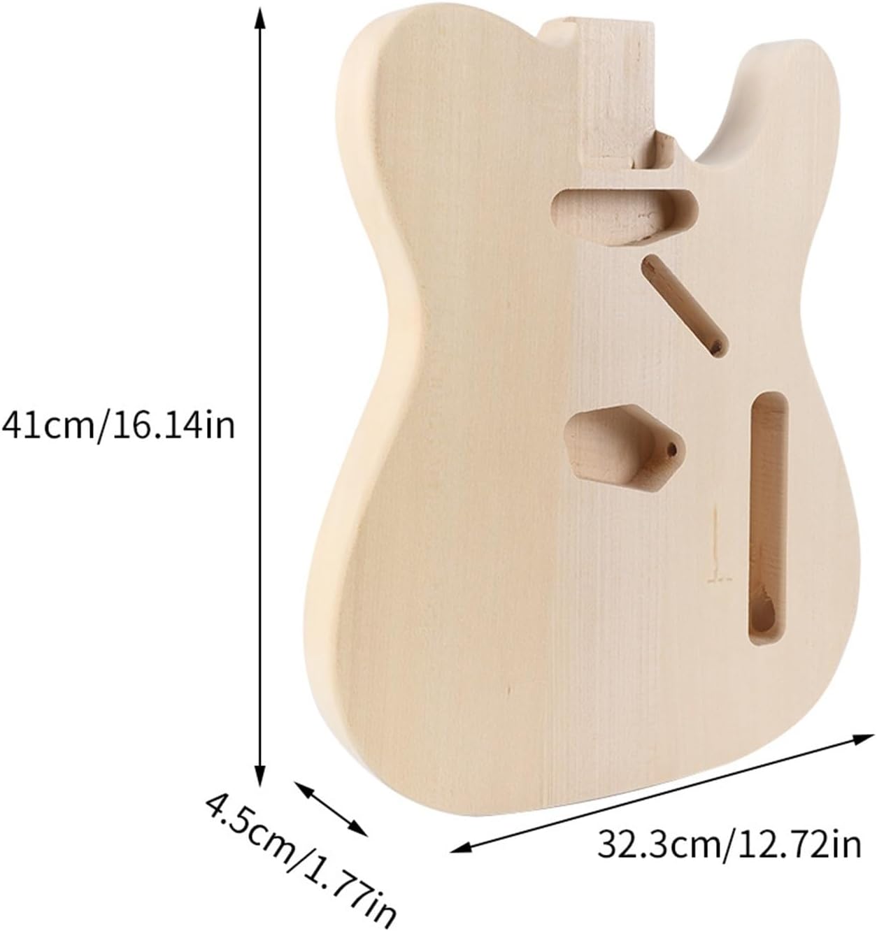 Crafted from high-quality solid wood, this unfinished guitar body delivers exceptional durability and superior resonance for enhanced sound performance. The body features precise pre-drilled holes and a smooth, sanded surface, making it easy to install hardware and customize with your preferred finish.Designed for DIY guitar builders, this blank guitar body offers a perfect canvas for staining, painting, or sealing to create a unique, personalized instrument. The lightweight yet sturdy construction ensures balanced weight distribution for comfortable playability.Whether you're a luthier, hobbyist, or musician, this unfinished guitar body is an excellent guitar accessory for building or upgrading your electric guitar. It’s also a great gift for guitar enthusiasts who enjoy the creativity and satisfaction of crafting their own instrument.Key Features:✔ Made from solid wood for durability and enhanced tone✔ Pre-drilled & sanded for easy customization and assembly✔ Smooth surface ready for paint, stain, or clear finish✔ Perfect for DIY projects, repairs, or upgradesUnleash your creativity and build the guitar of your dreams with this premium unfinished guitar body!